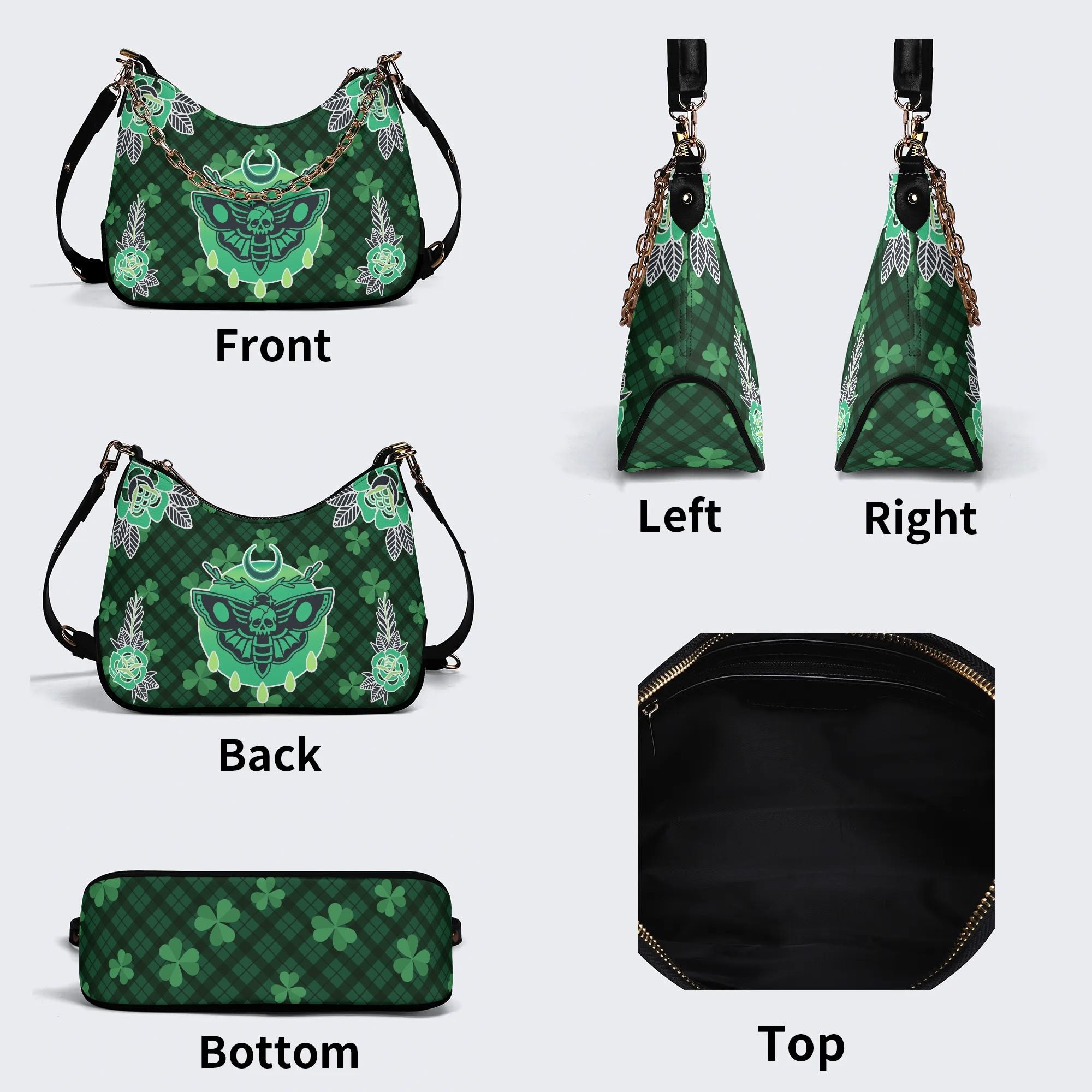 Green Plaid Death Moth - Leather Crossbody Bag