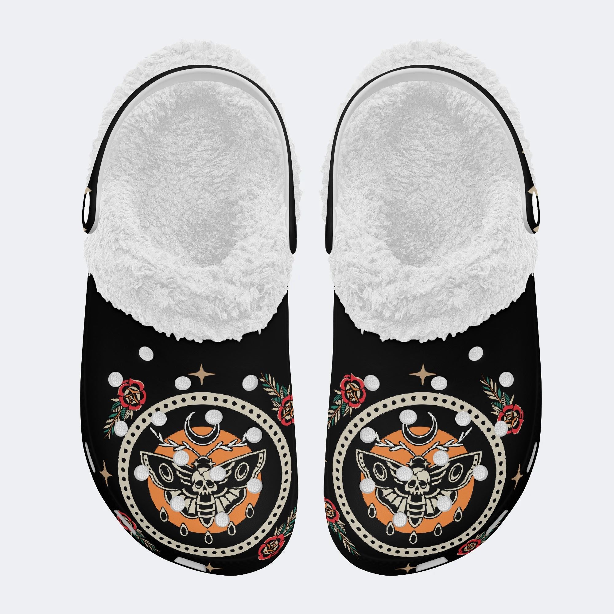 Death Moth Vintage Print - Fur Lined Slippers/Sandals
