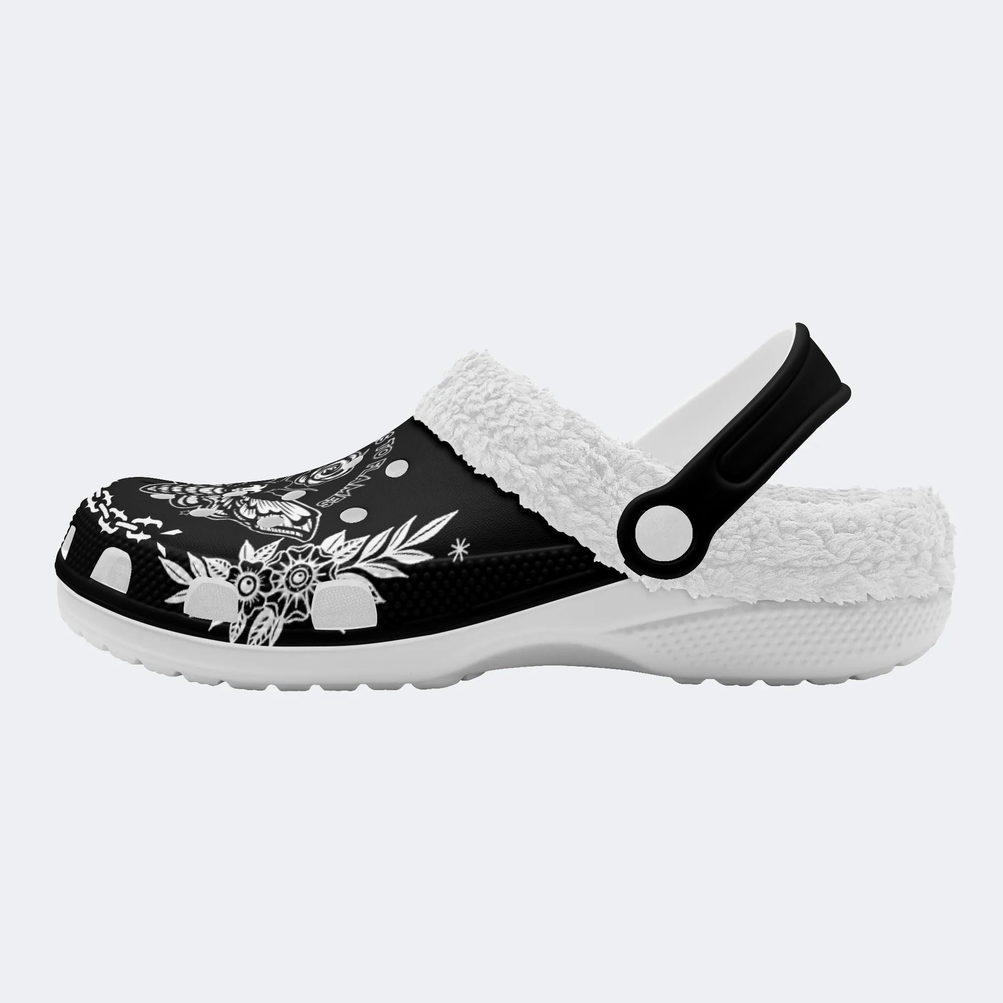Rose Death Moth Vintage Print- Fur Lined Slippers/Sandals