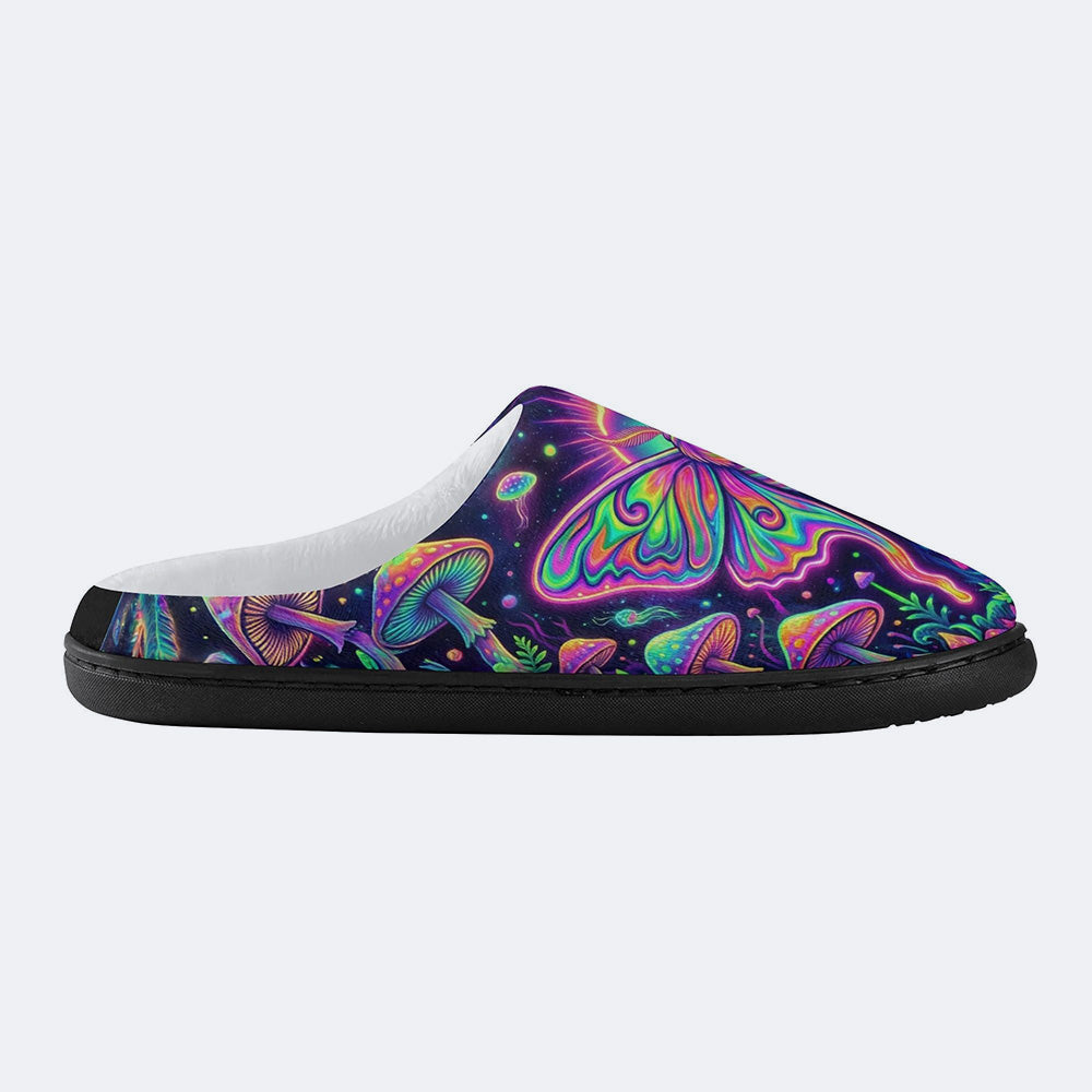 Flowing Color Psychedelic Moth Print Fleece-Lined Slippers