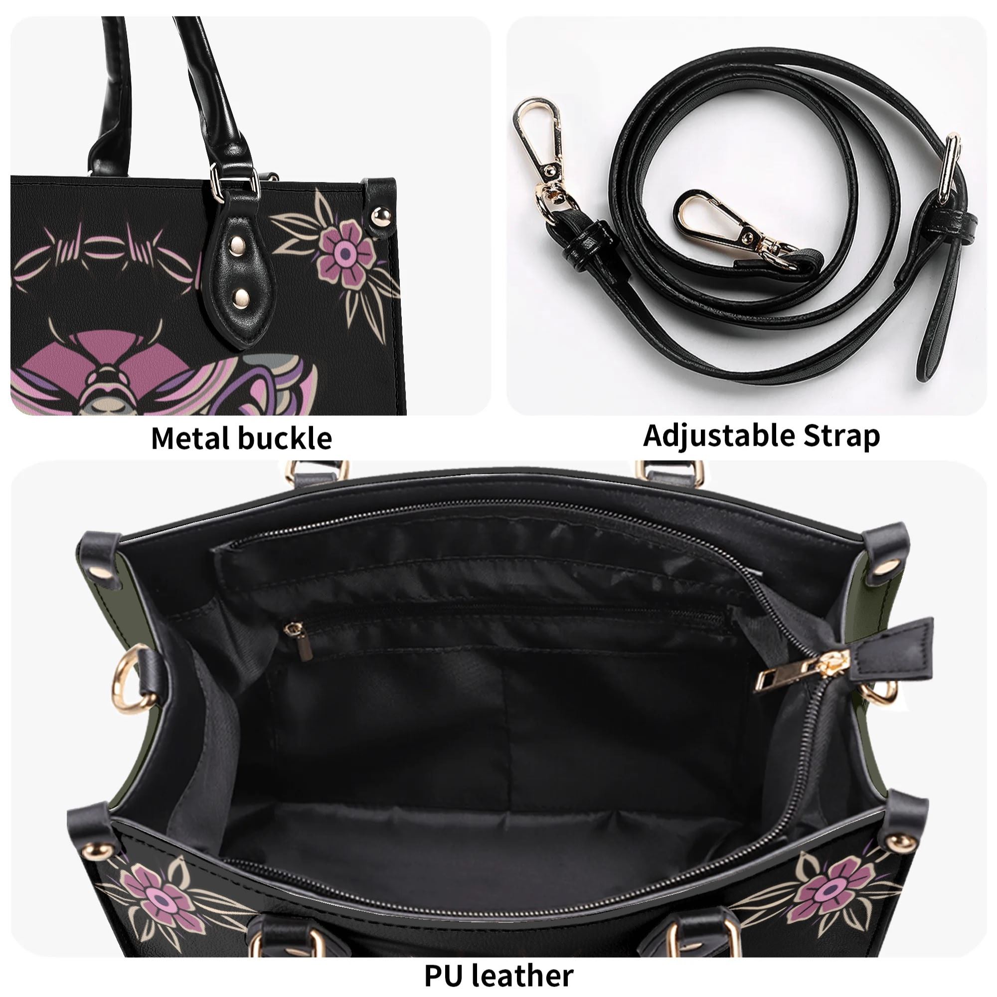 * Sturdy 2 top handles, Removable and adjustable strap, 5 inside pockets.