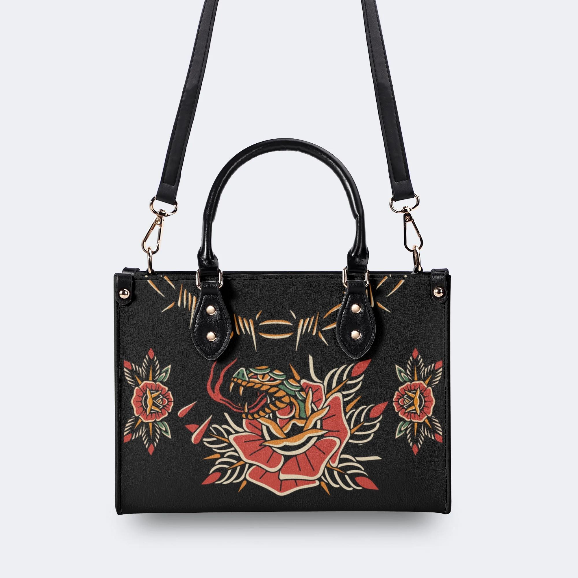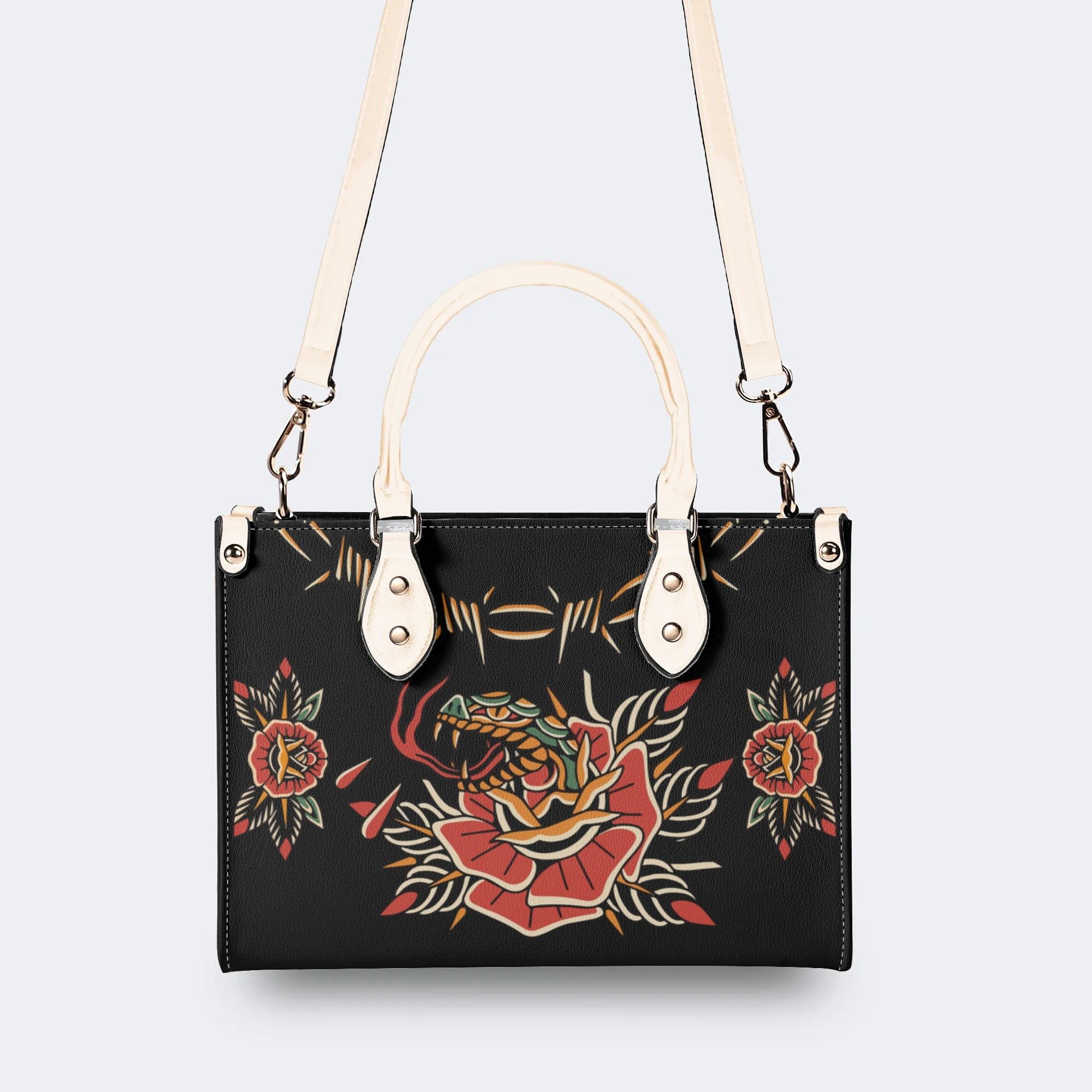 Rose and Snake Print - Leather HandbagRose and Snake Print - Leather Handbag