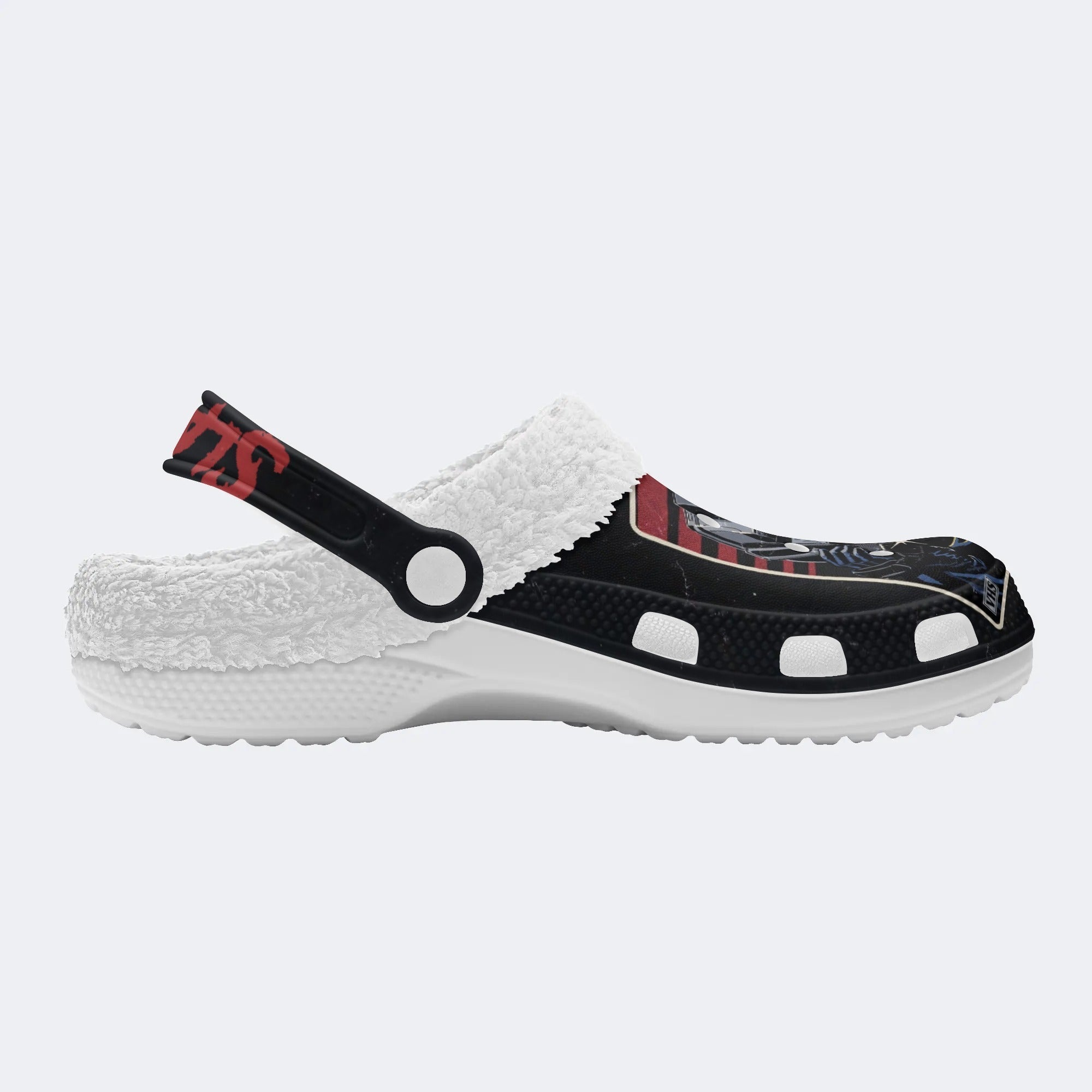 * Materials: Black/White EVA Outsoles basic support with interior is lined with ultra-soft fleece fur, providing all-day cushioning and insulation.