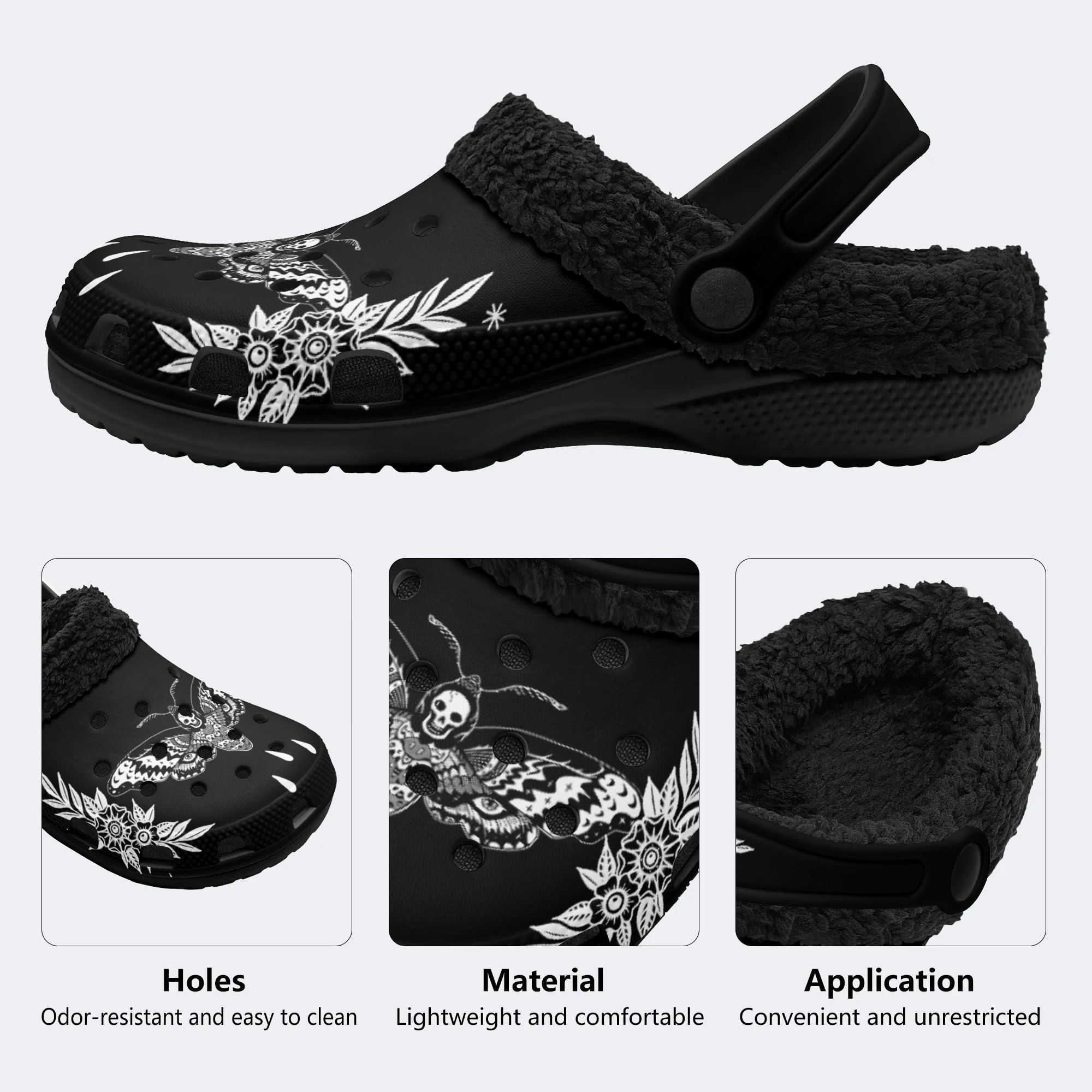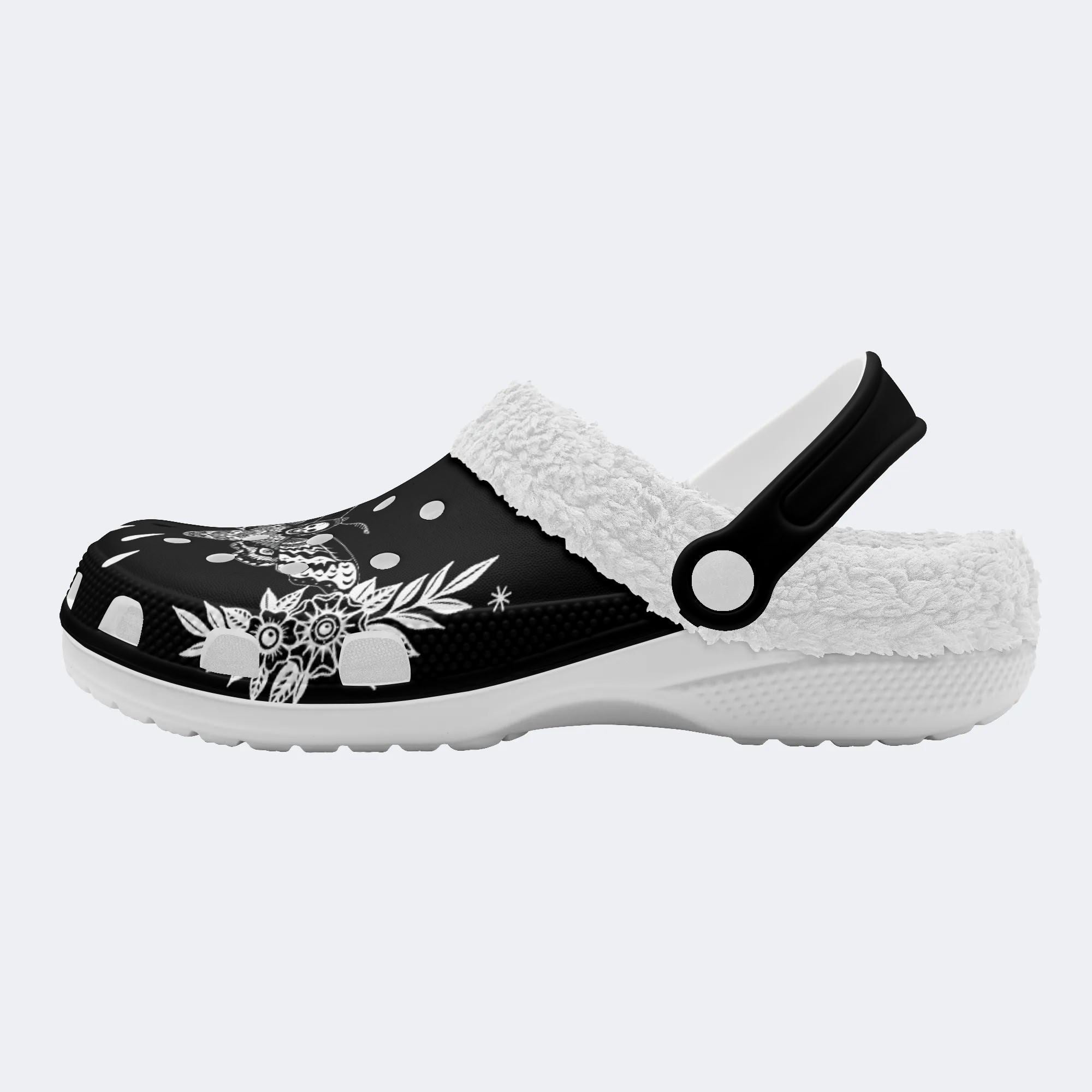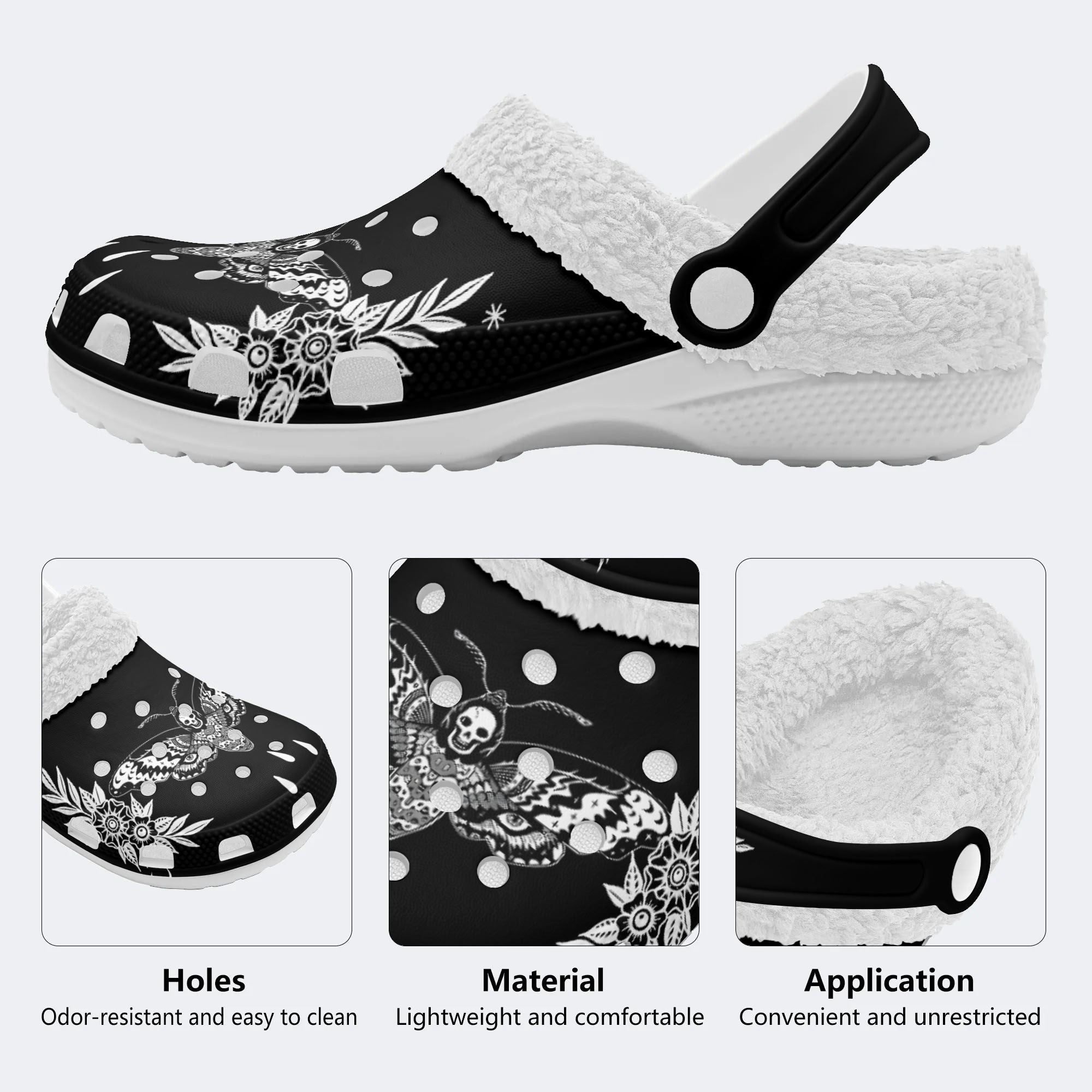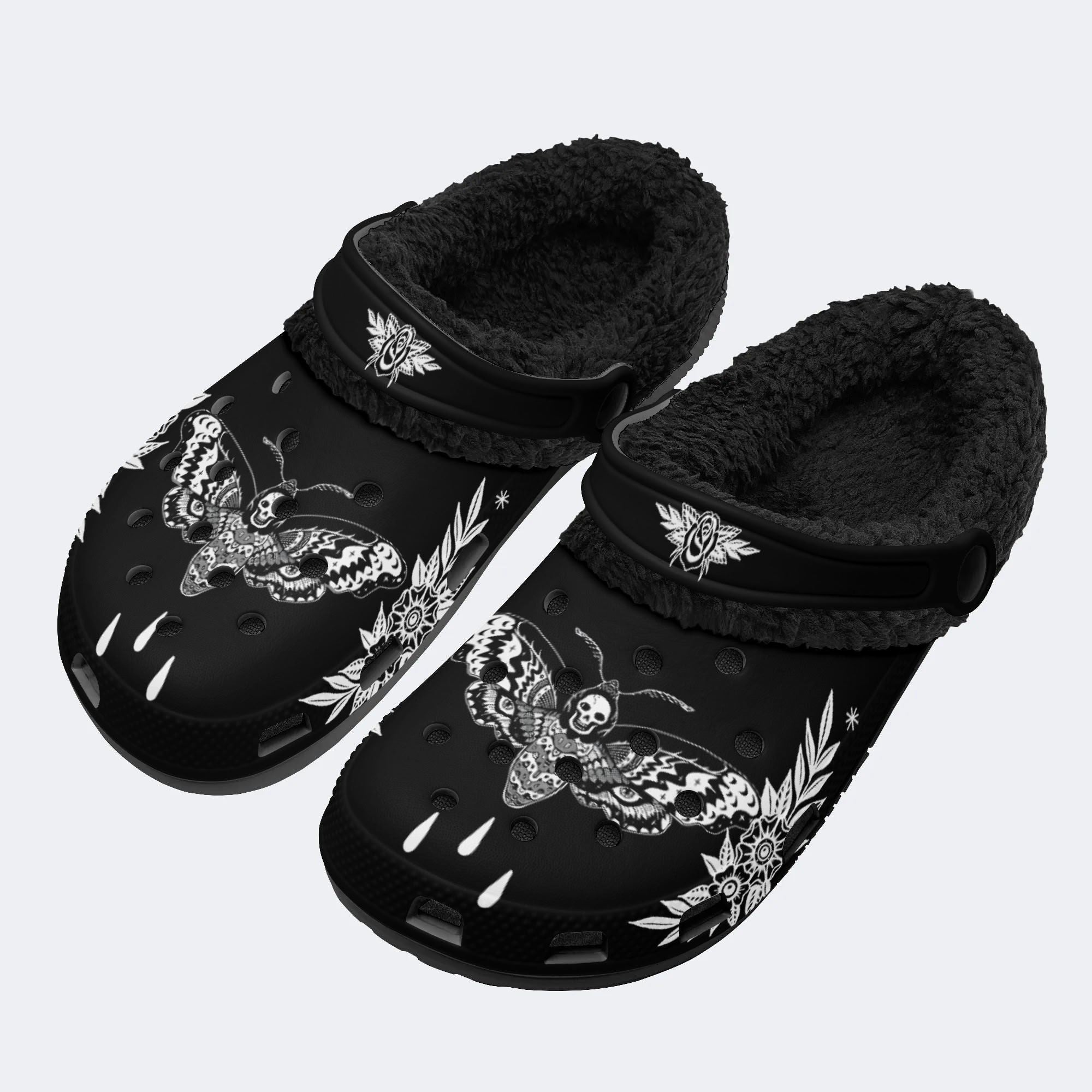 Surreal Death Moth&Skull - Fur Lined Slippers/Sandals