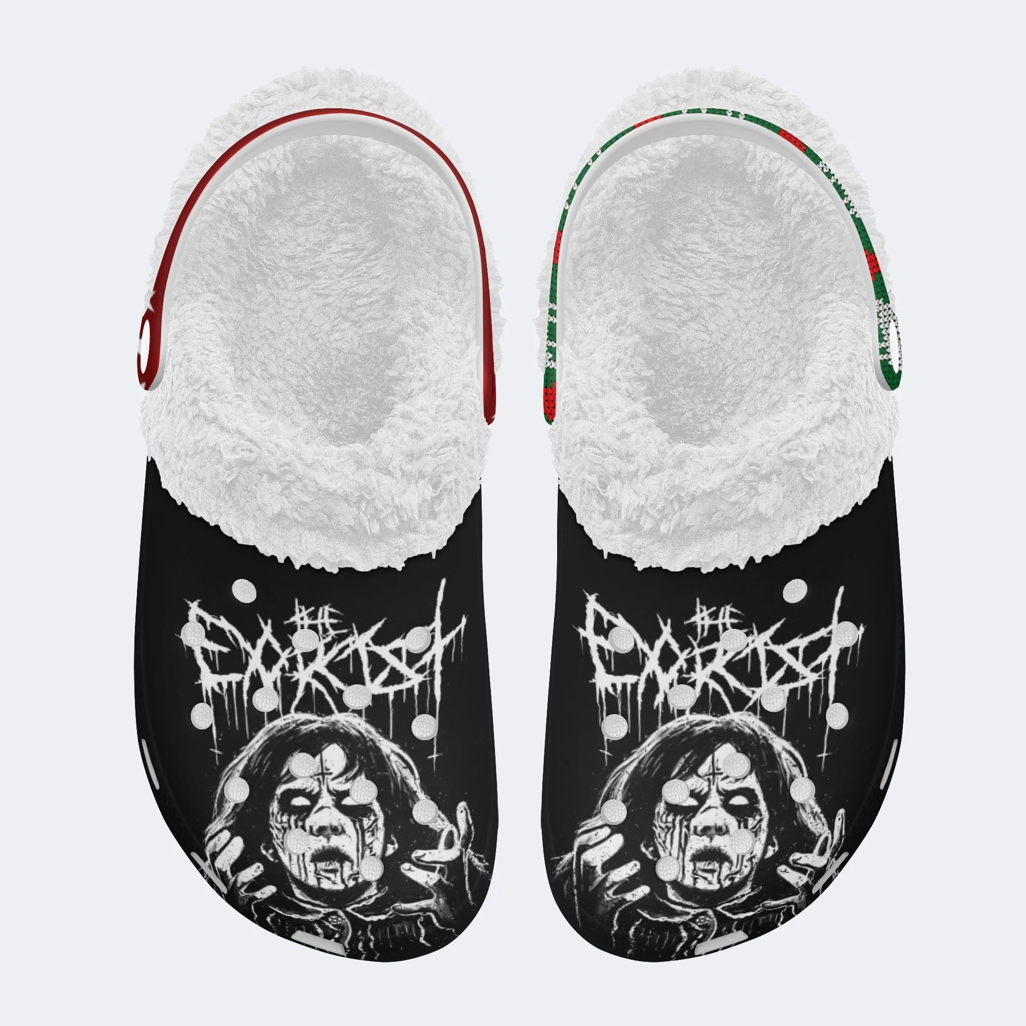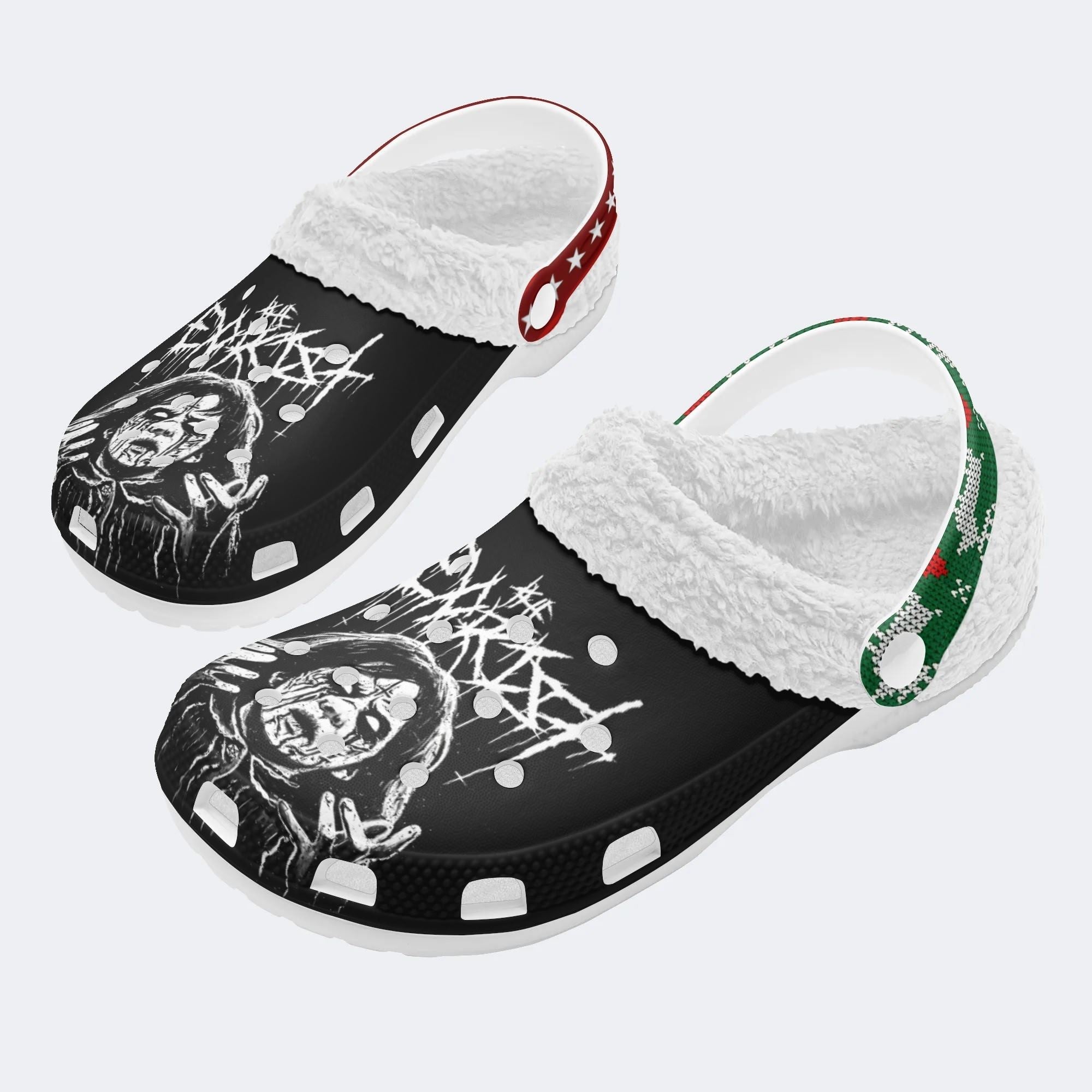 Unisex Black Metal Pinhead Print - Fur Lined Slippers/Sandals