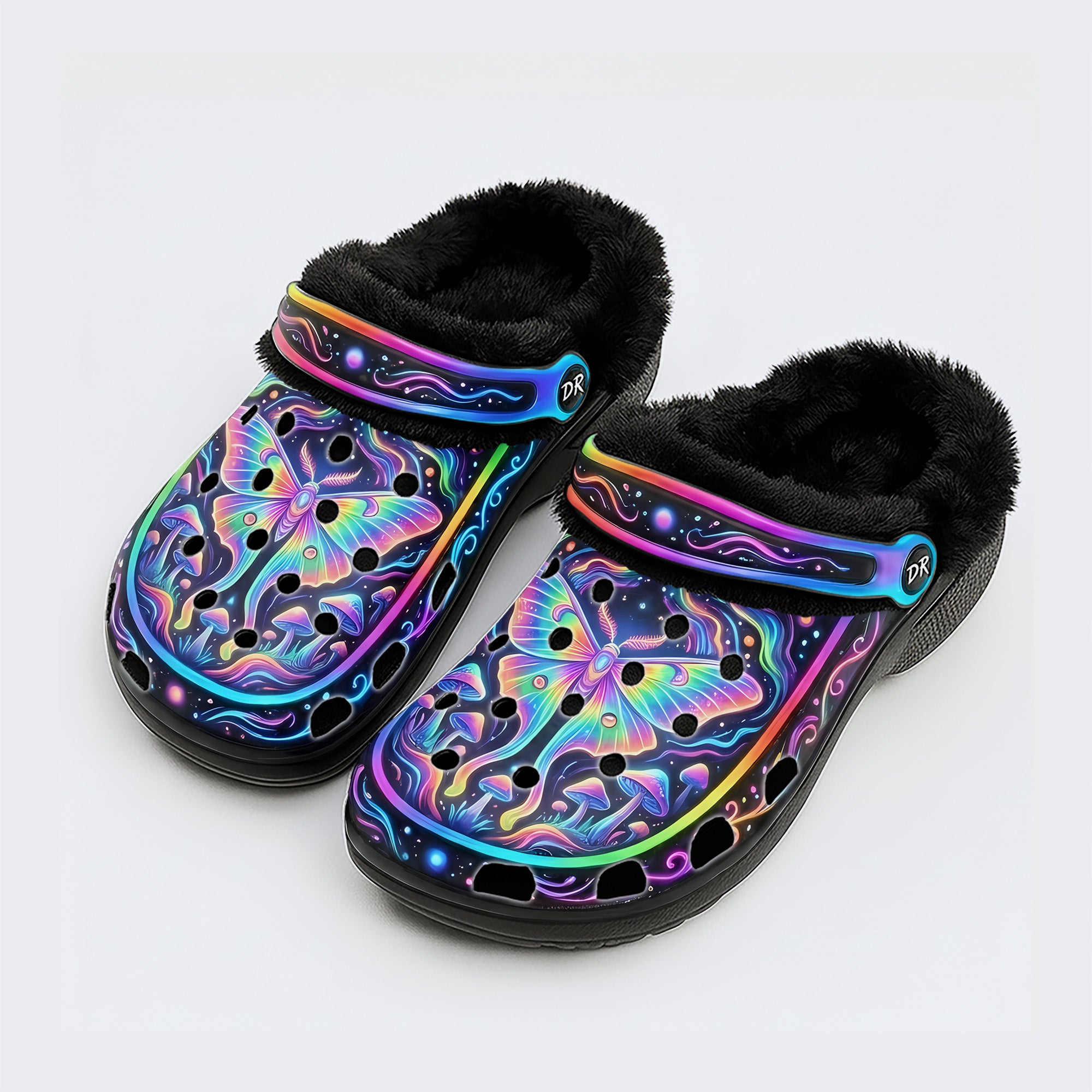 Cosmic Psychedelic Moth Print Clogs