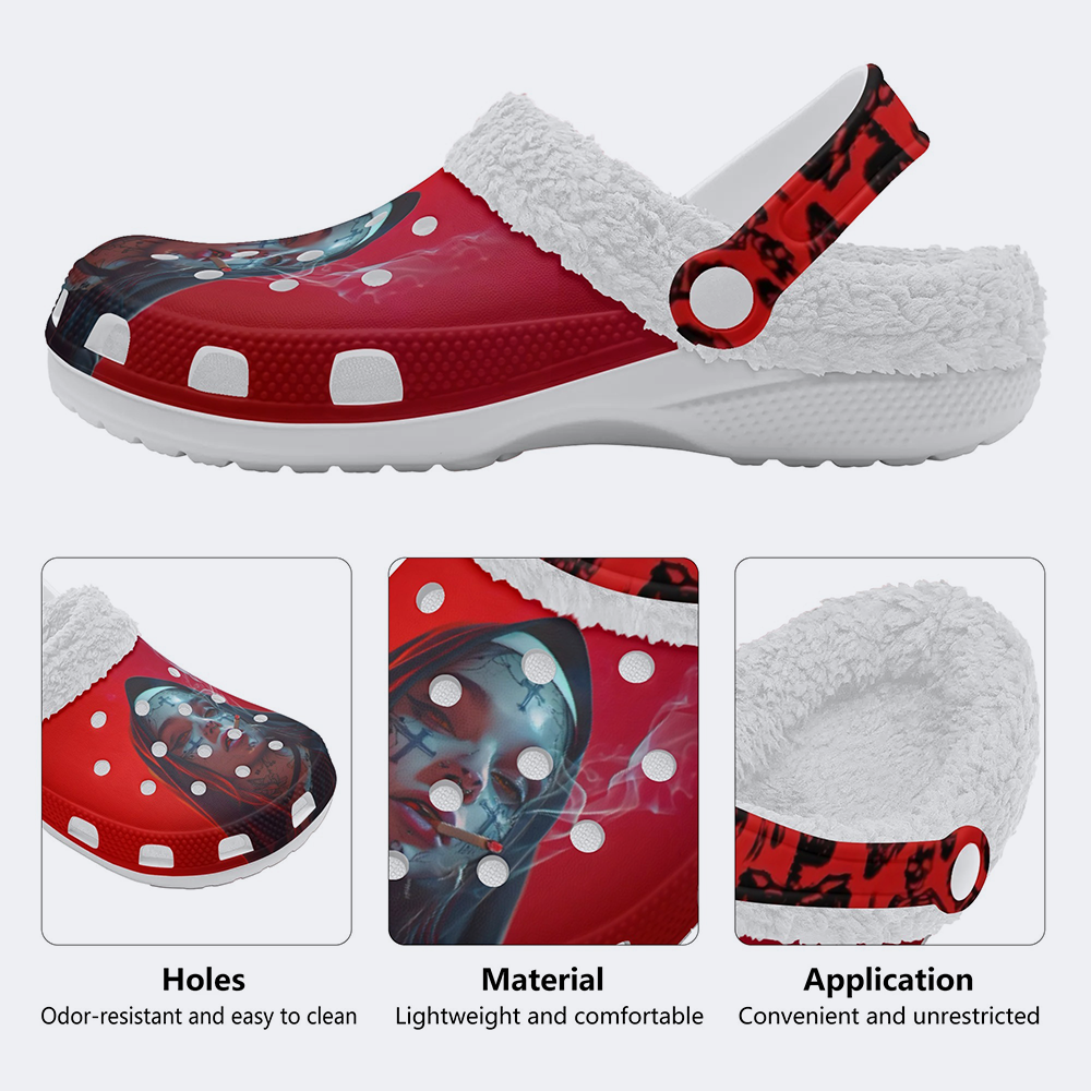 Smoking Nun Vintage Print - Fur Lined Slippers/Sandals