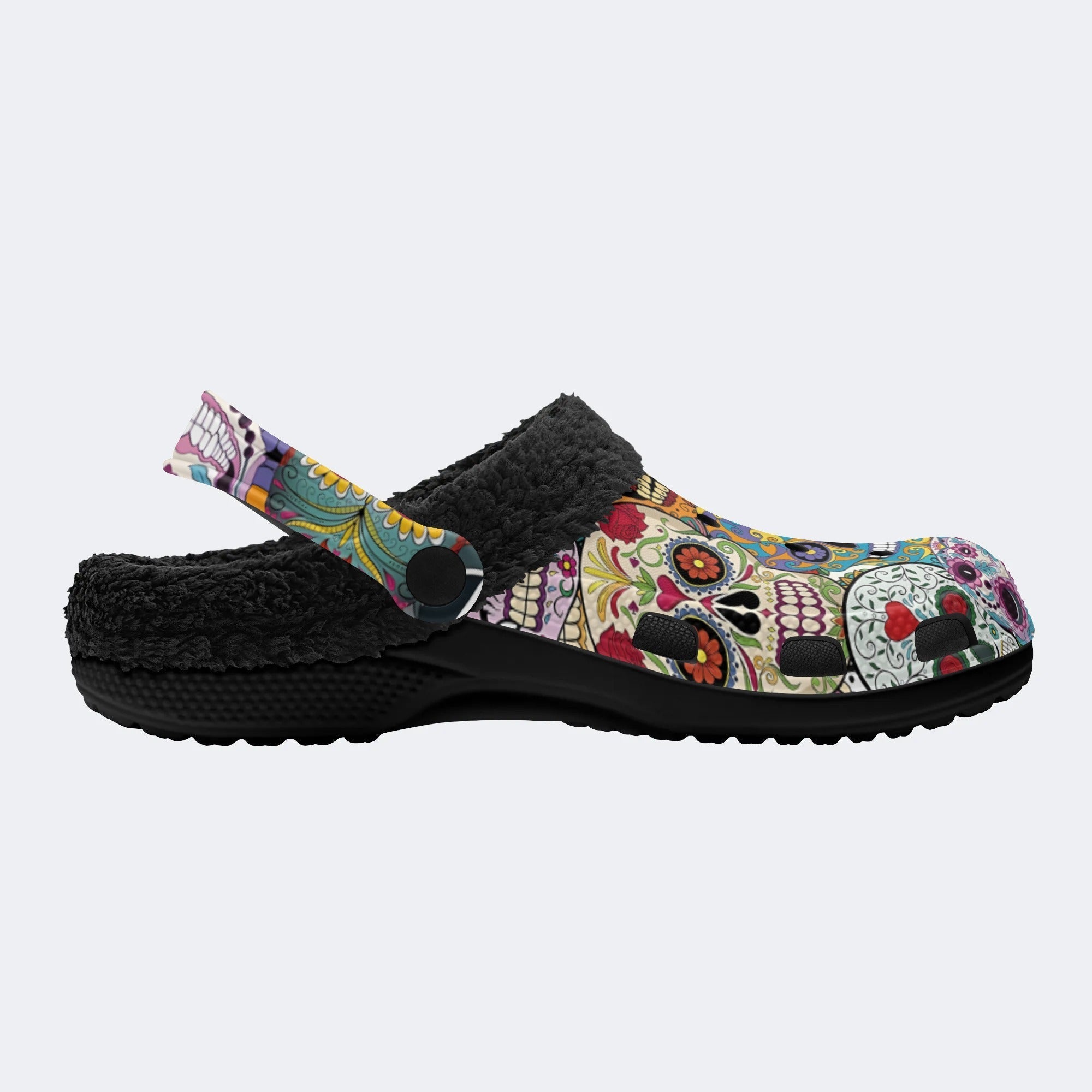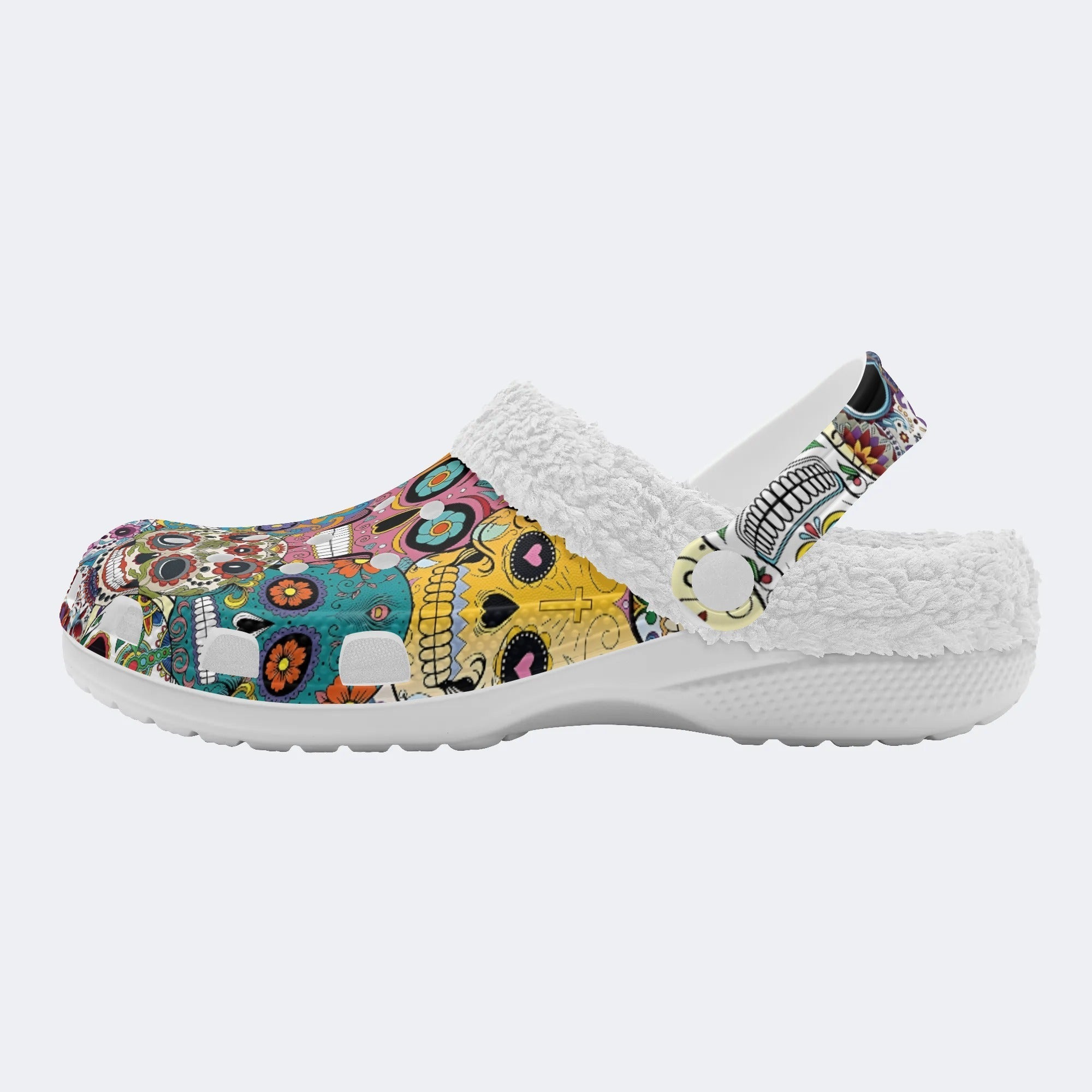 Unisex Skull Graffiti Art Print - Fur Lined Slippers/Sandals