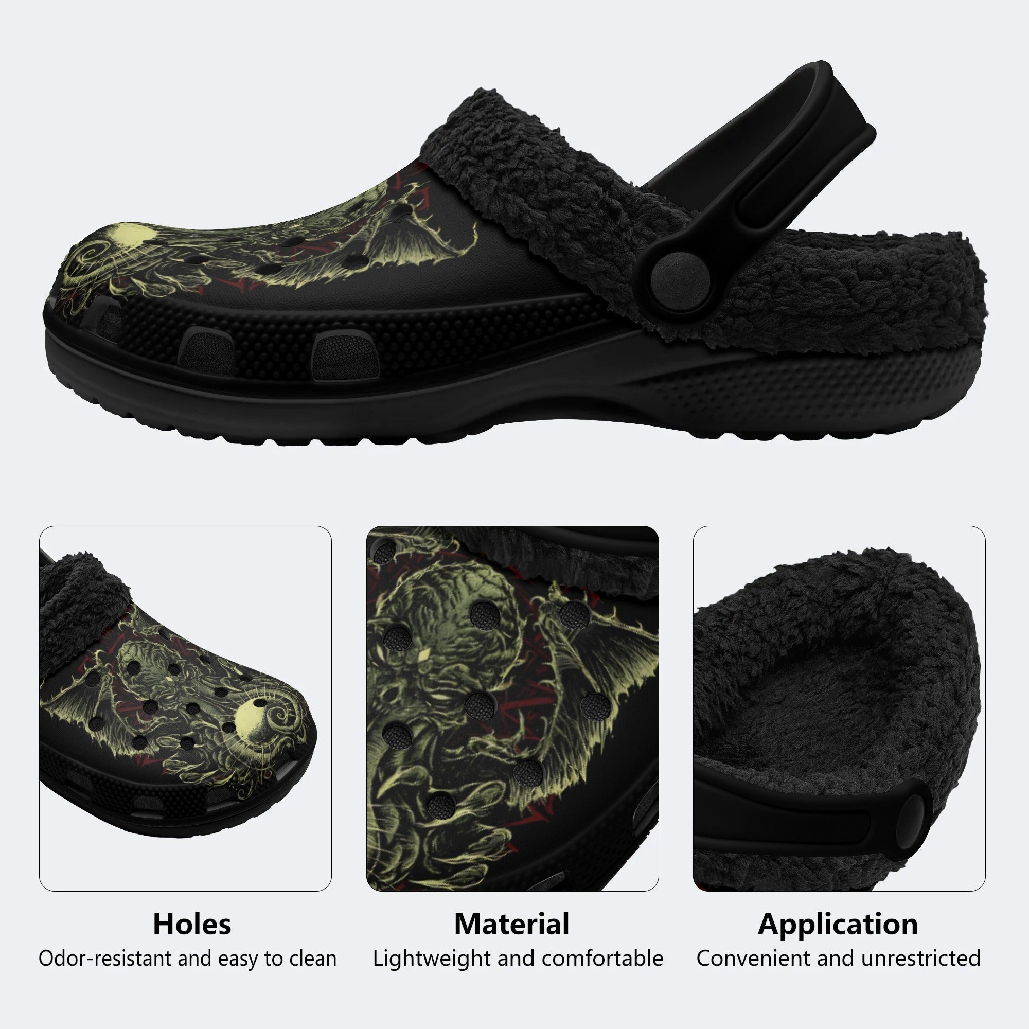 * Materials: Black/White EVA Outsoles basic support with interior is lined with ultra-soft fleece fur, providing all-day cushioning and insulation.