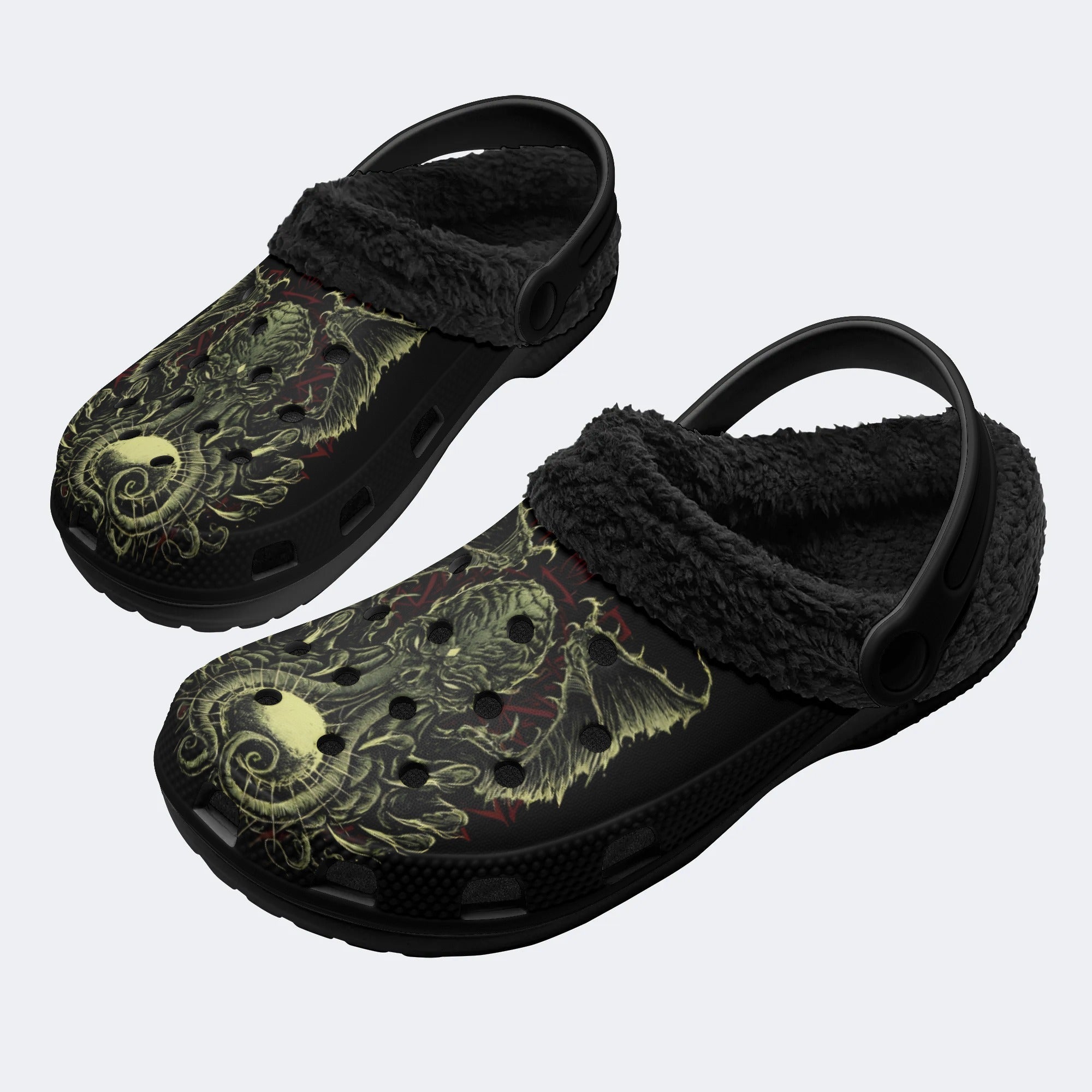 Vintage Octopus Print - Fur Lined Slippers/Sandals