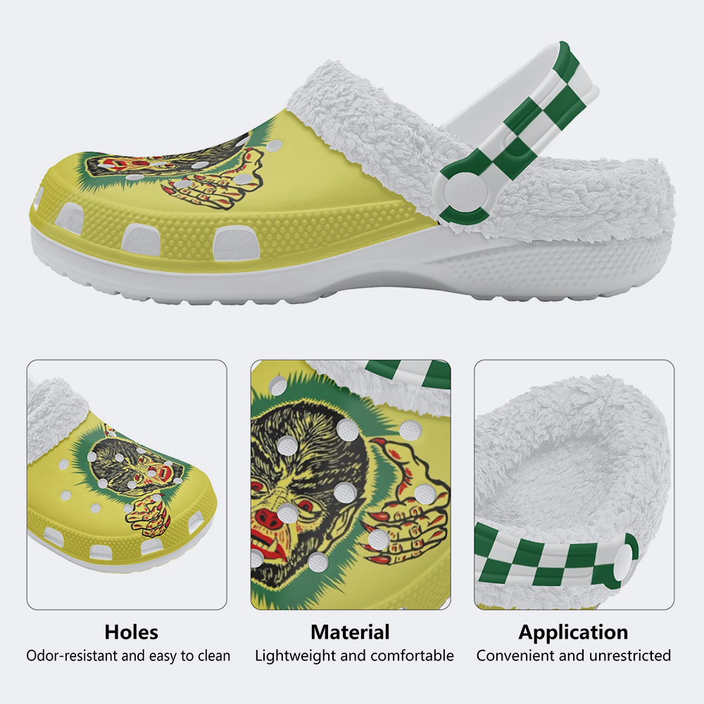 Vintage Wolfman Halloween Art - Fur Lined Slippers/Sandals