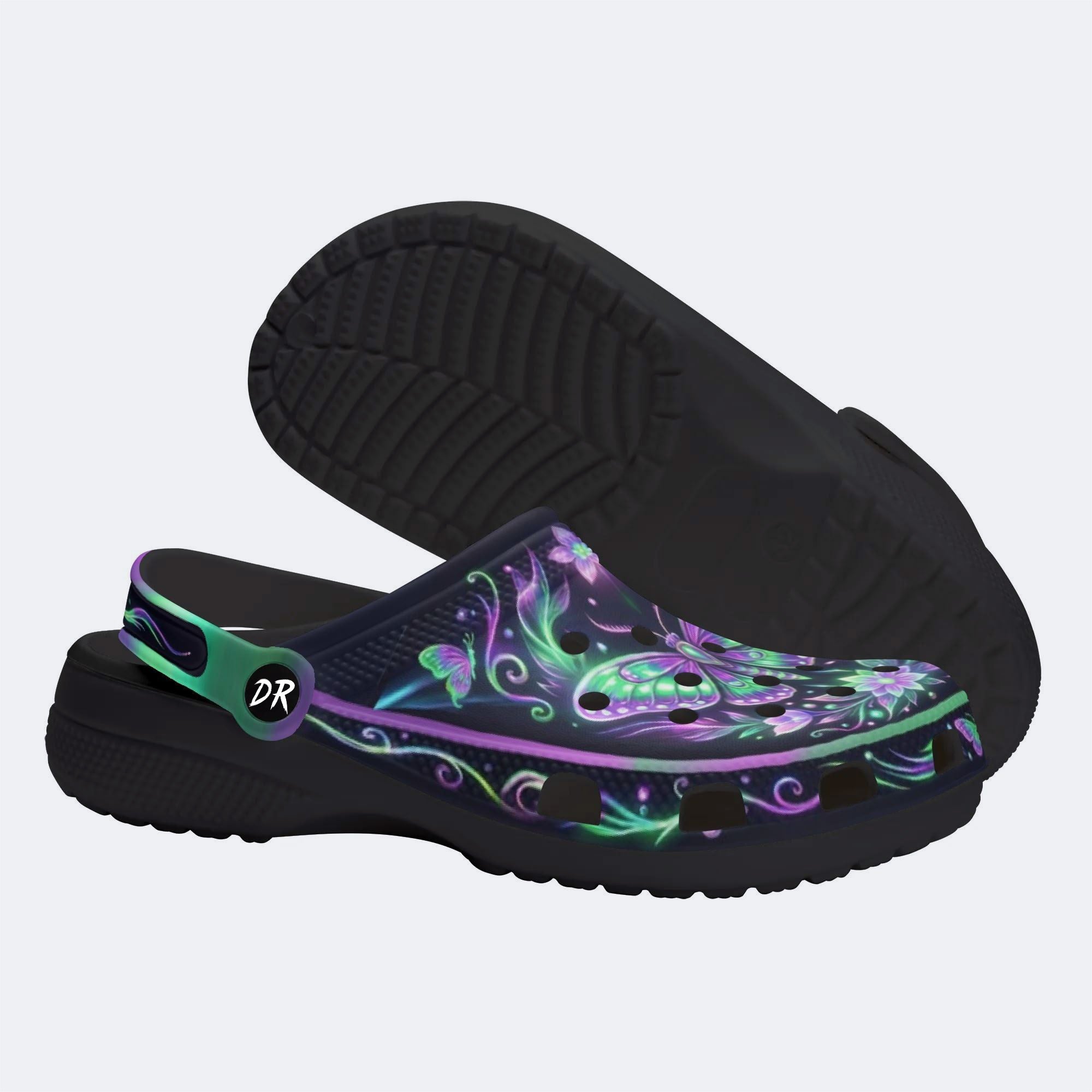 Dark Night Iridescent Moth Flowers Print Clogs