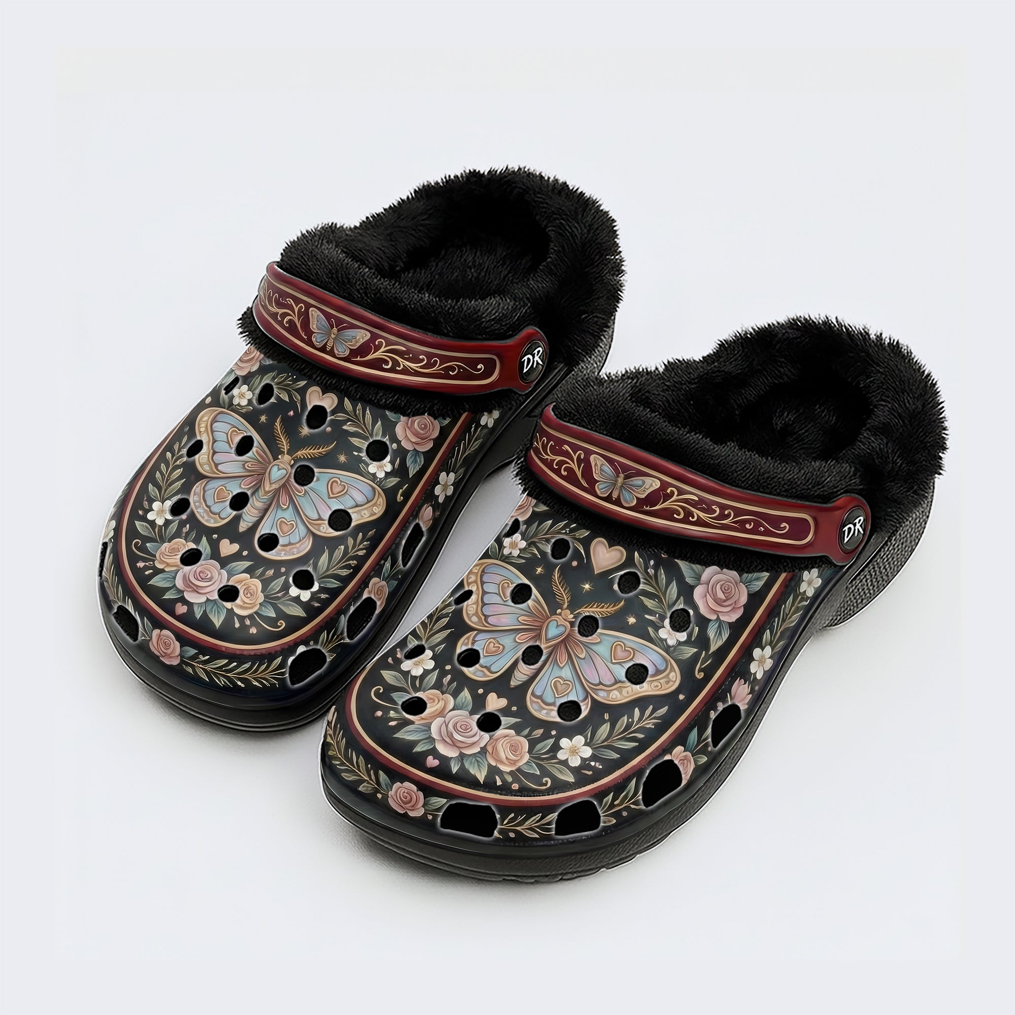 Romantic Wreath Moth Print ClogsRomantic Wreath Moth Print Clogs