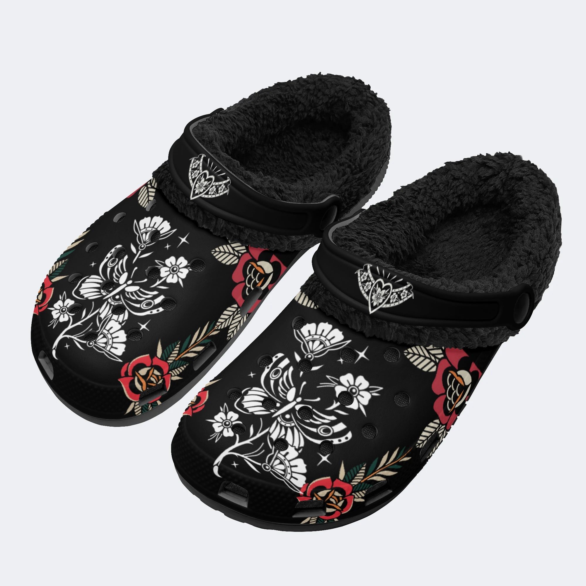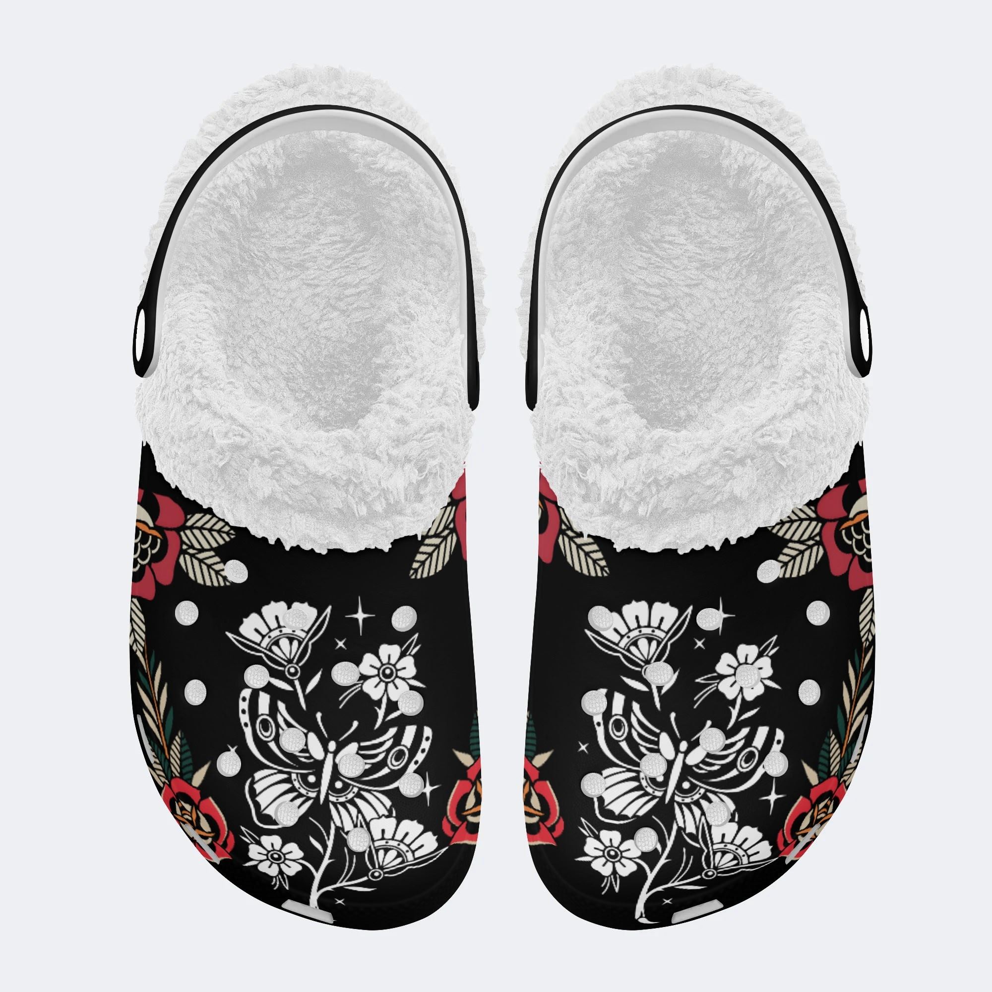 Butterfly&Flower Art Print - Fur Lined Slippers/Sandals