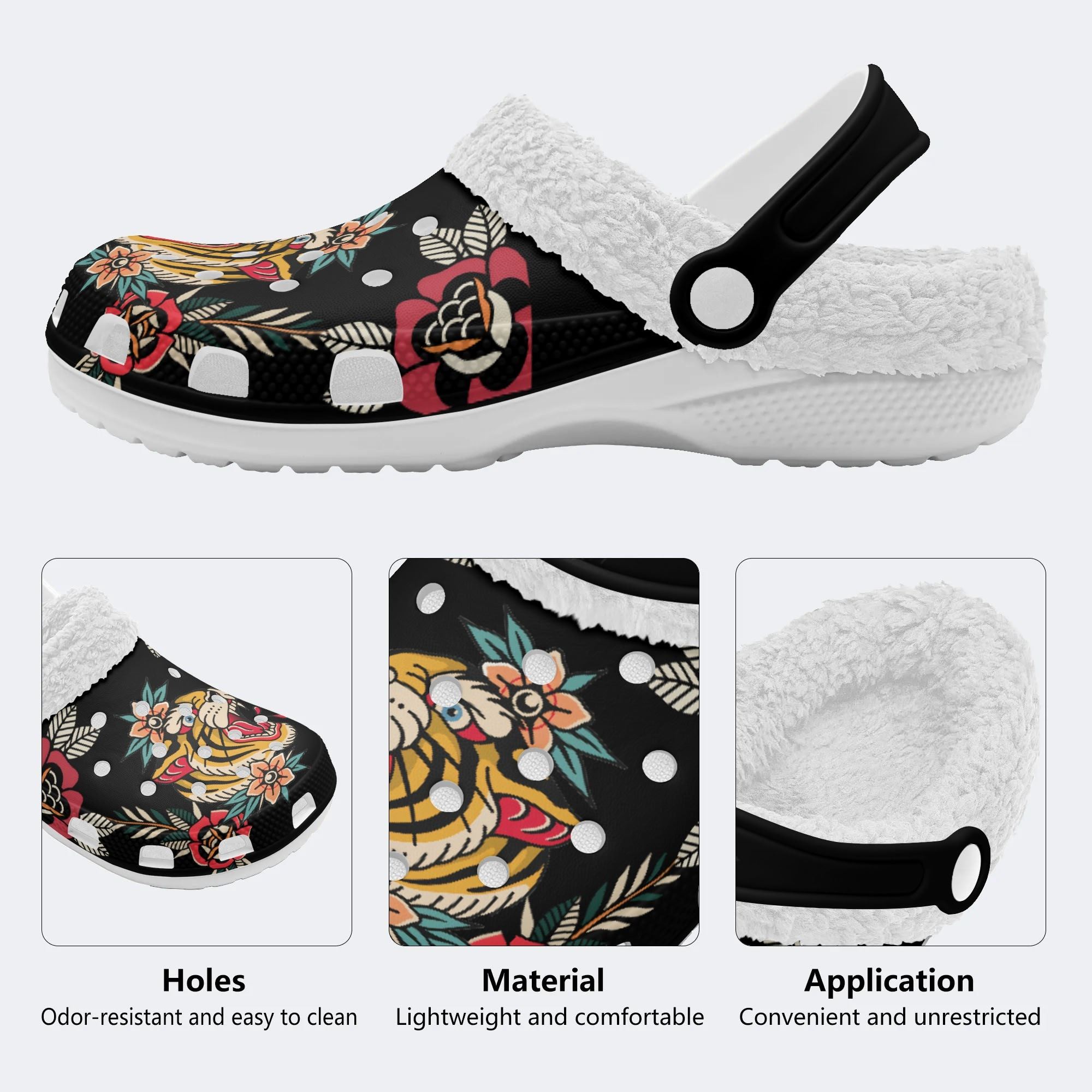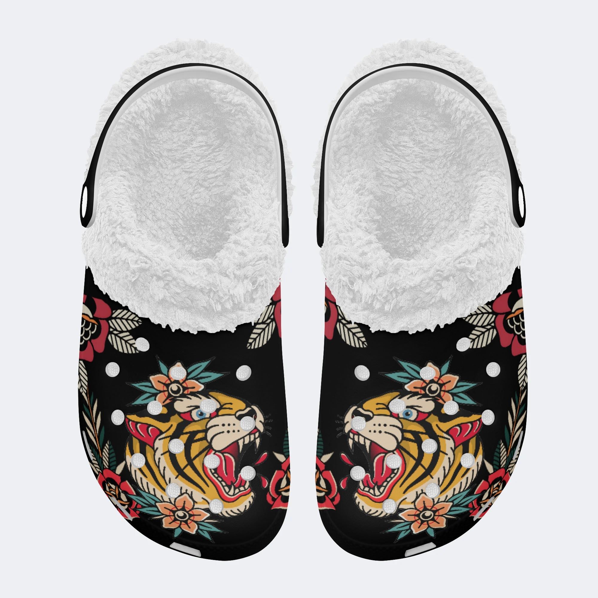 Flower Tiger Art Print - Fur Lined Slippers/Sandals