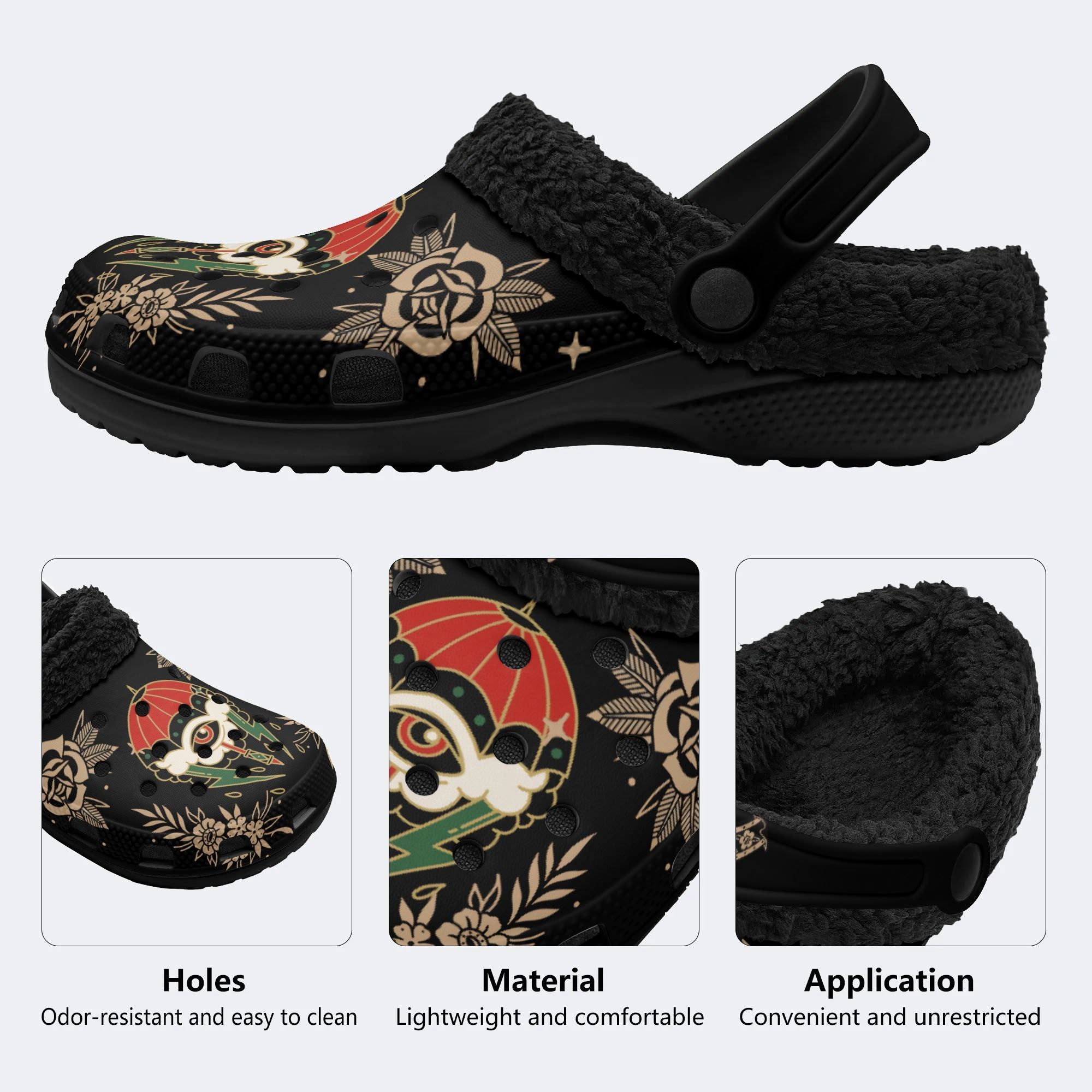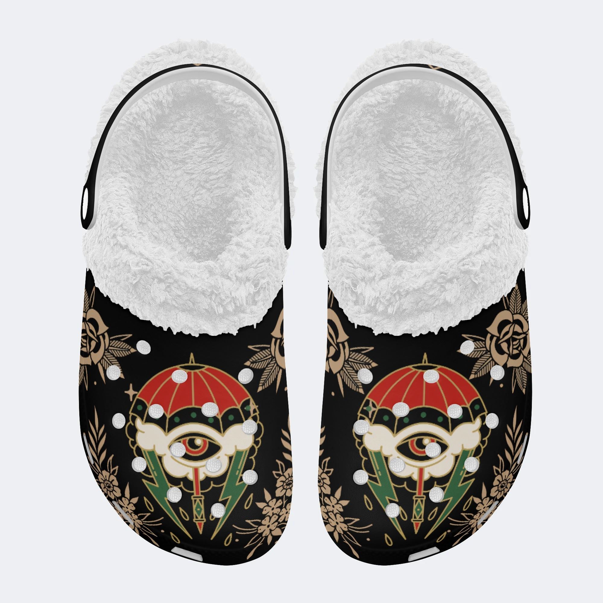 Lightning Umbrella Eyes Print - Fur Lined Slippers/Sandals