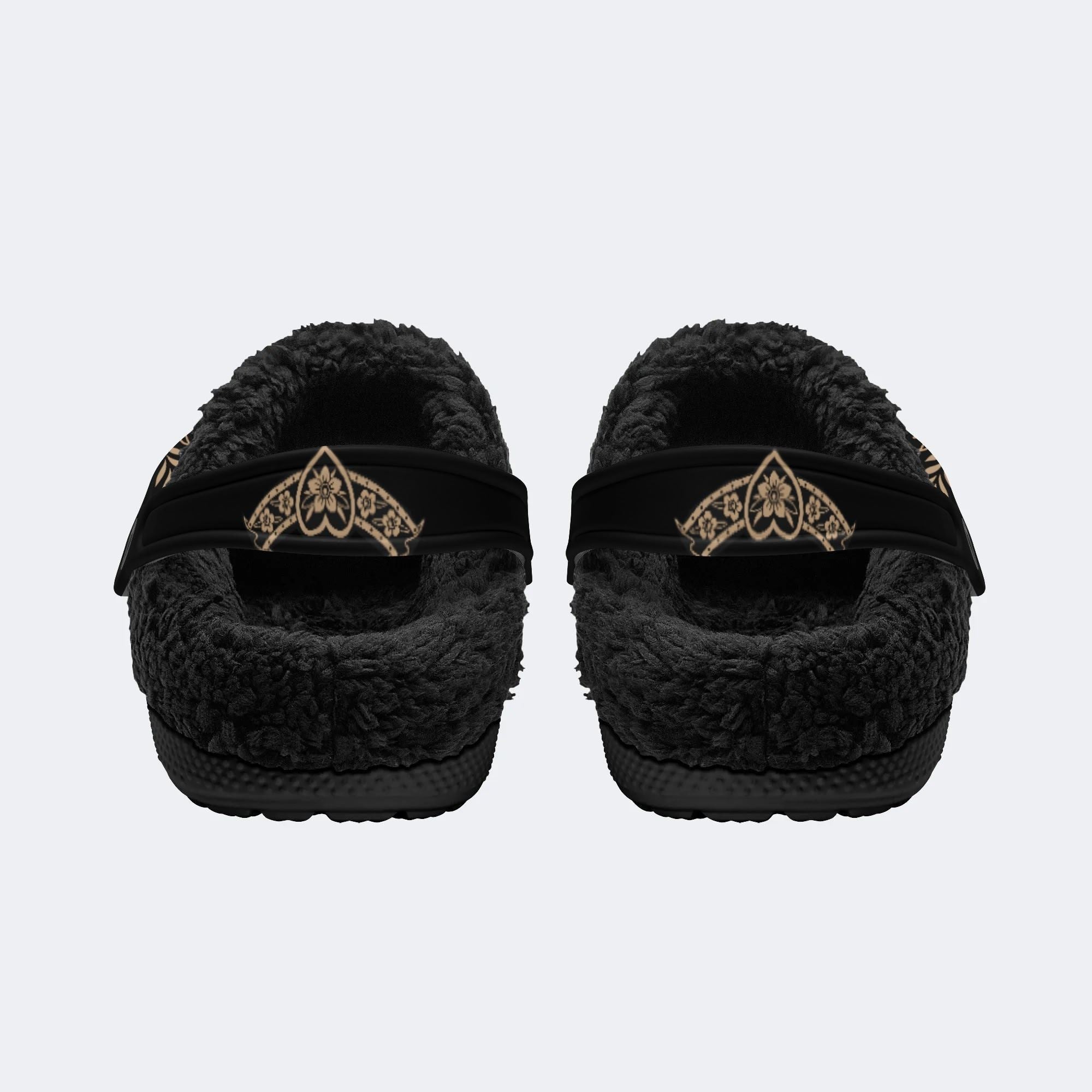 * Materials: Black/White EVA Outsoles basic support with interior is lined with ultra-soft fleece fur, providing all-day cushioning and insulation.