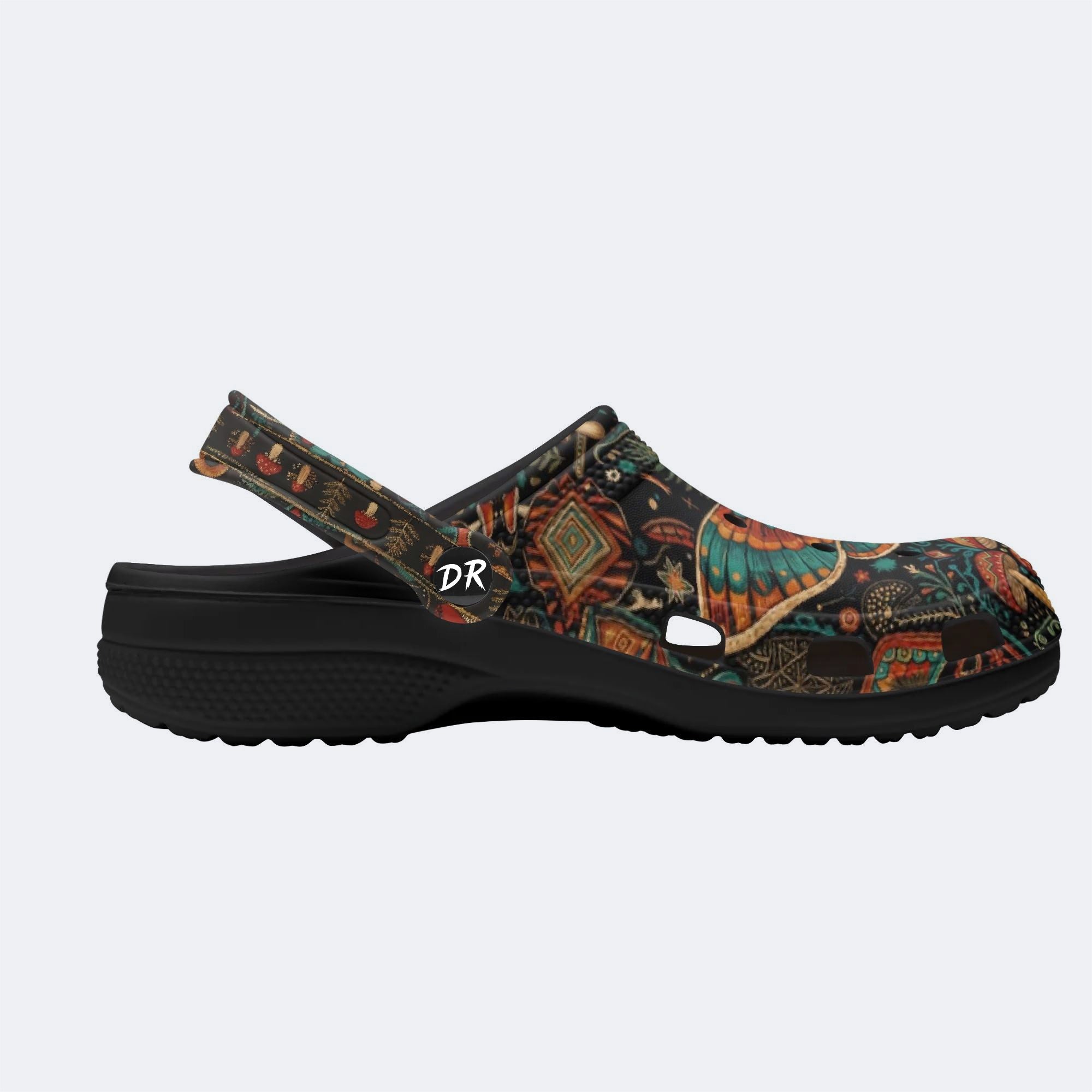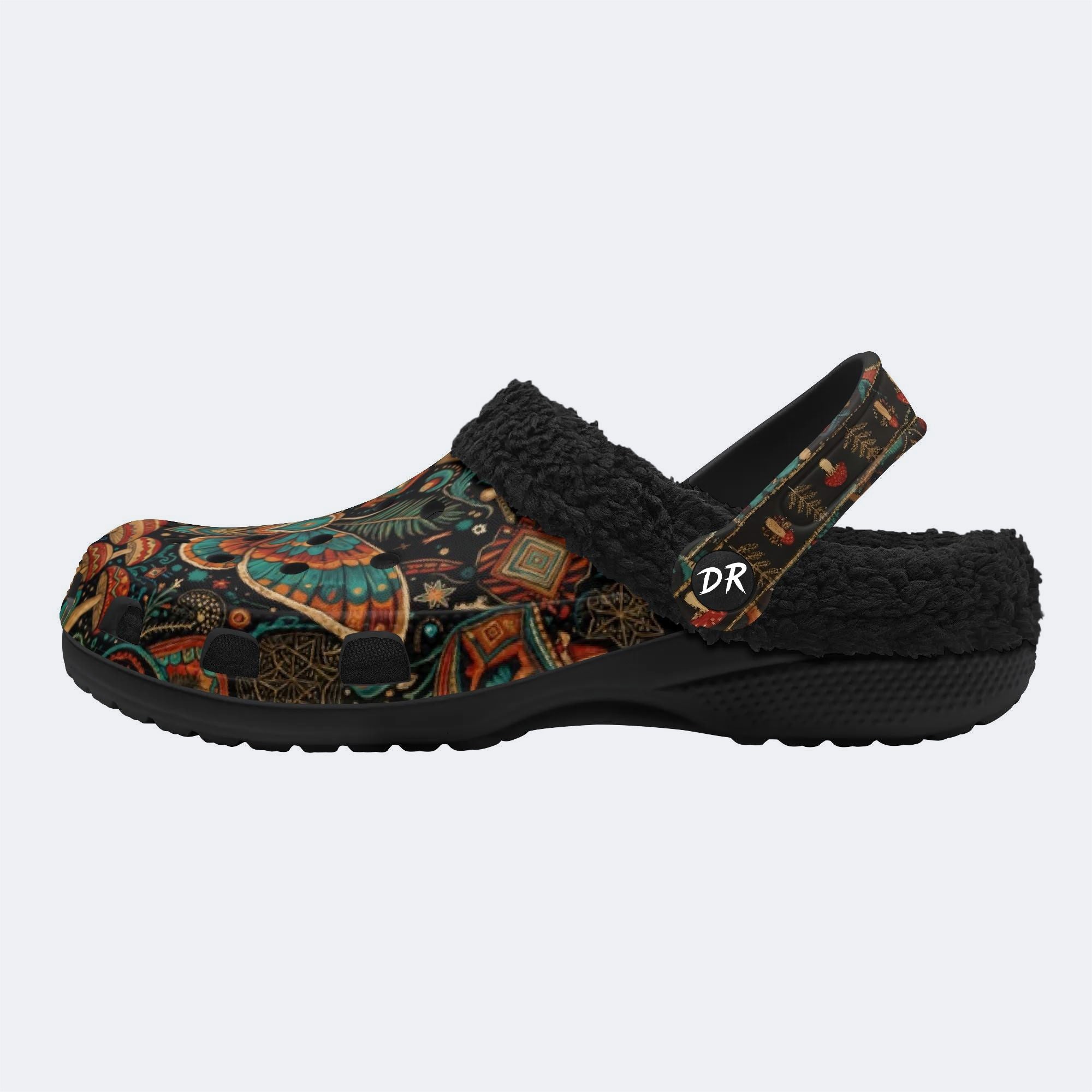 Retro Moth Mushroom Totem Print Fleece-Lined Clogs