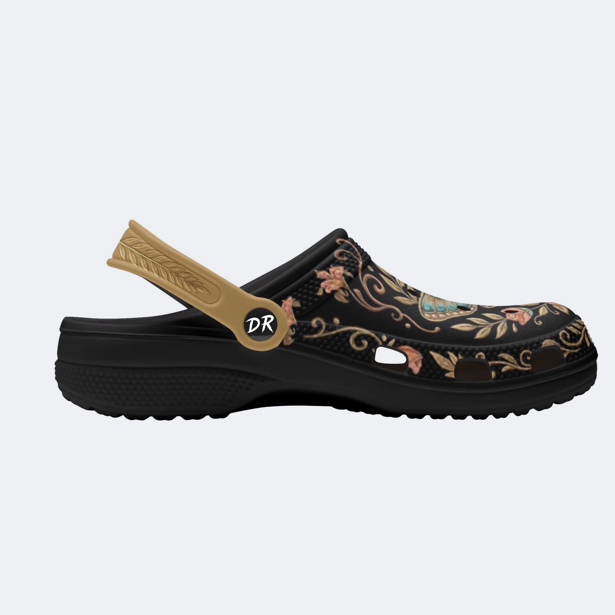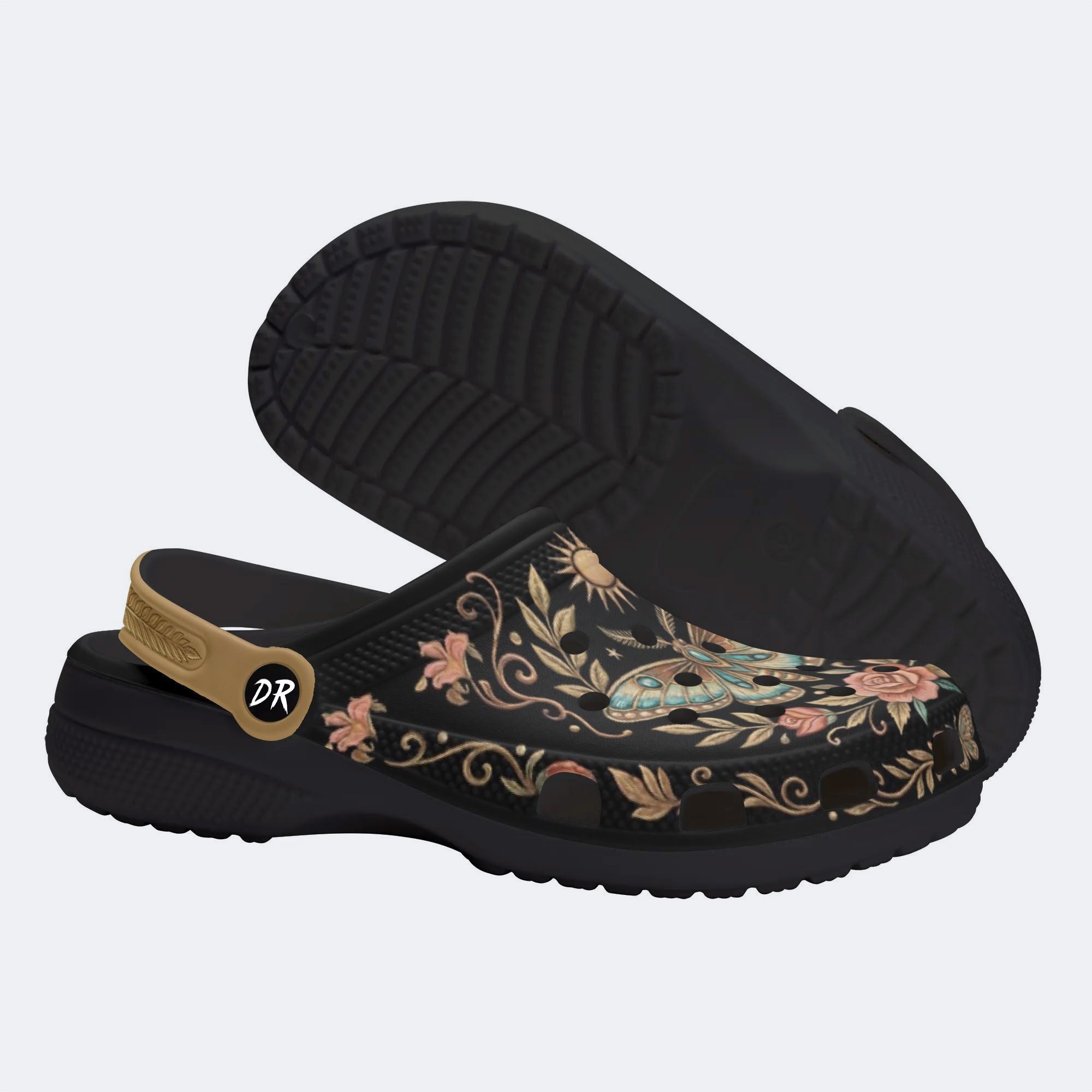 Vintage Moth Rose Print Fleece-Lined Clogs
