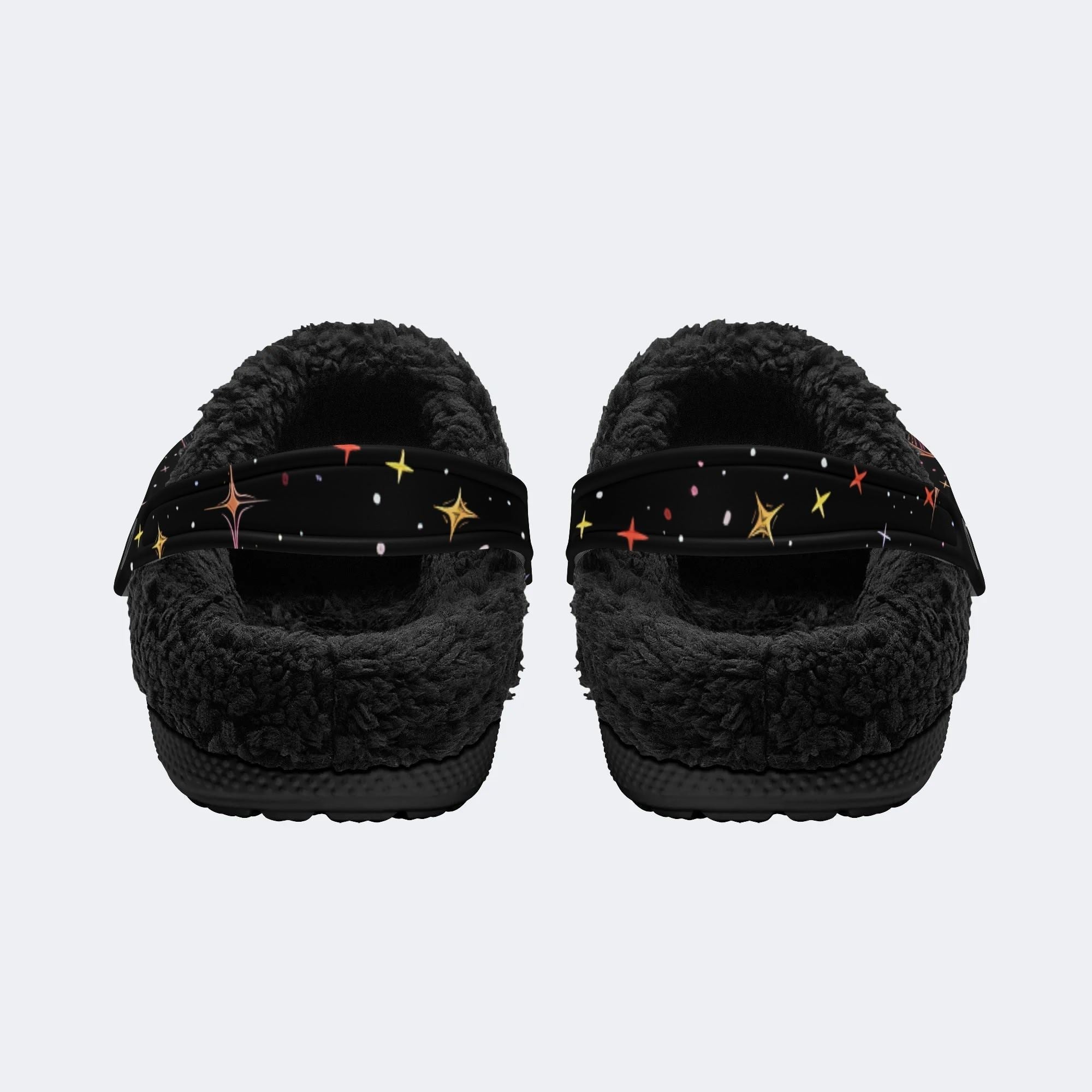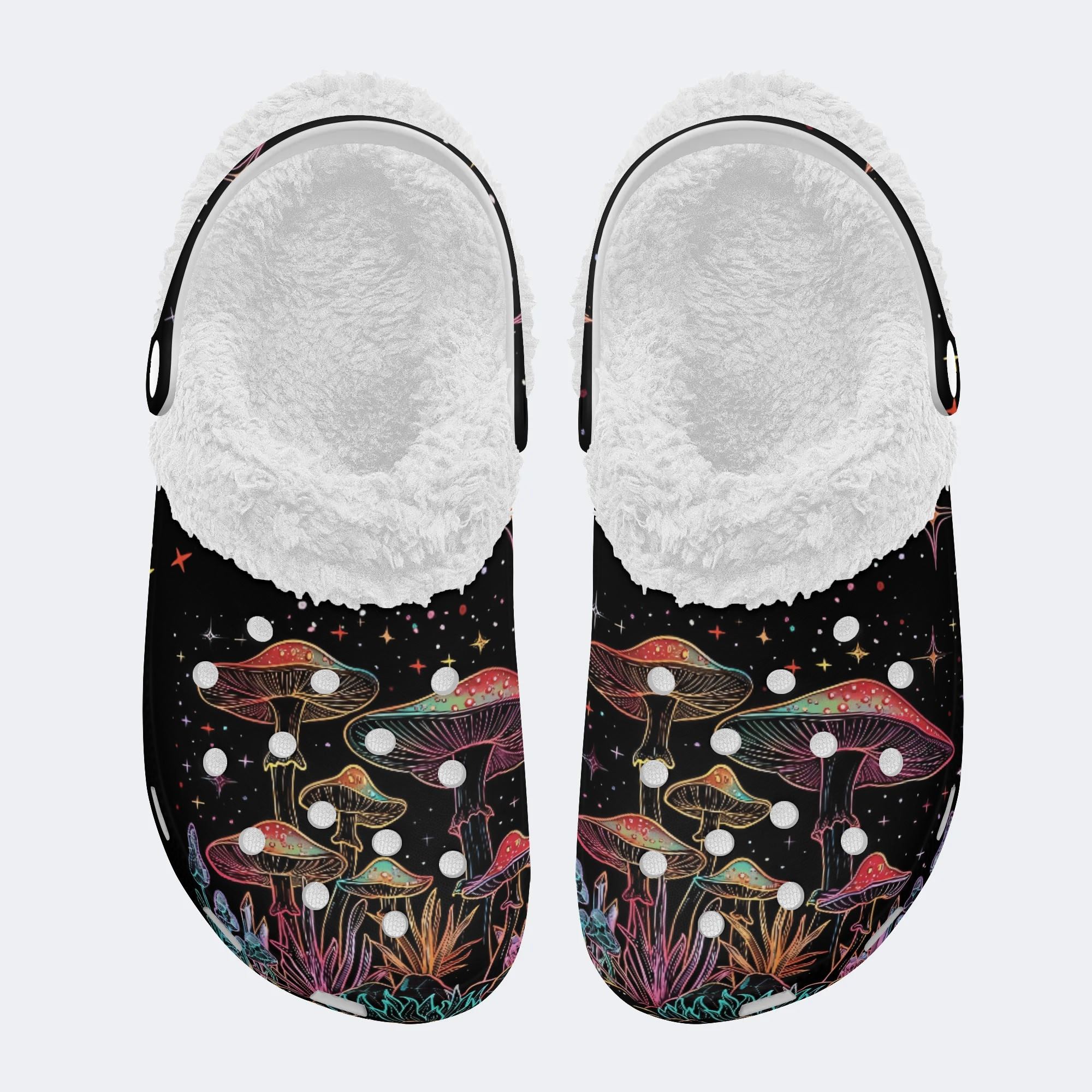 Colorful Starry Sky Mushroom Print - Fur Lined Slippers/Sandals