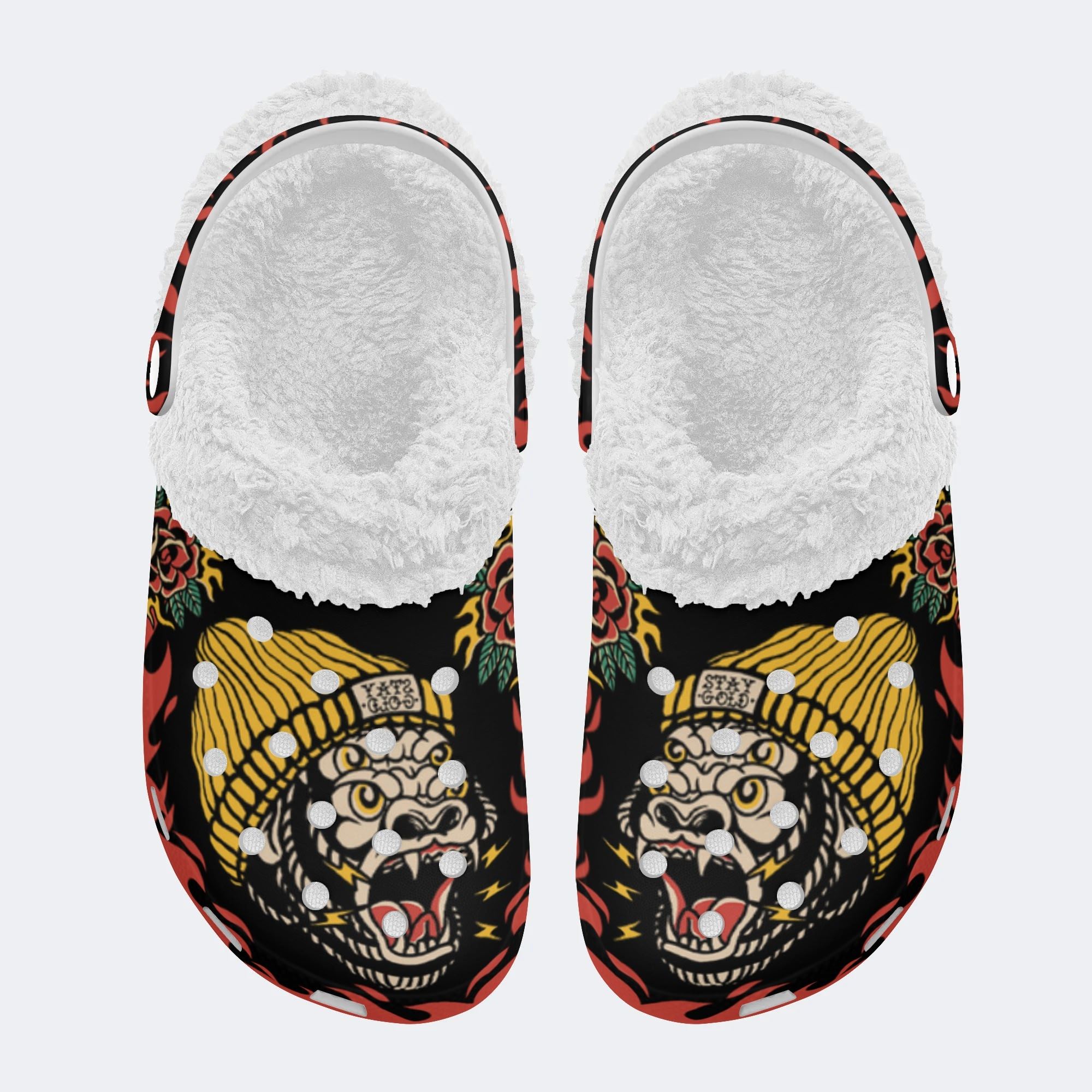Fire Chimpanzees Print - Fur Lined Slippers/Sandals