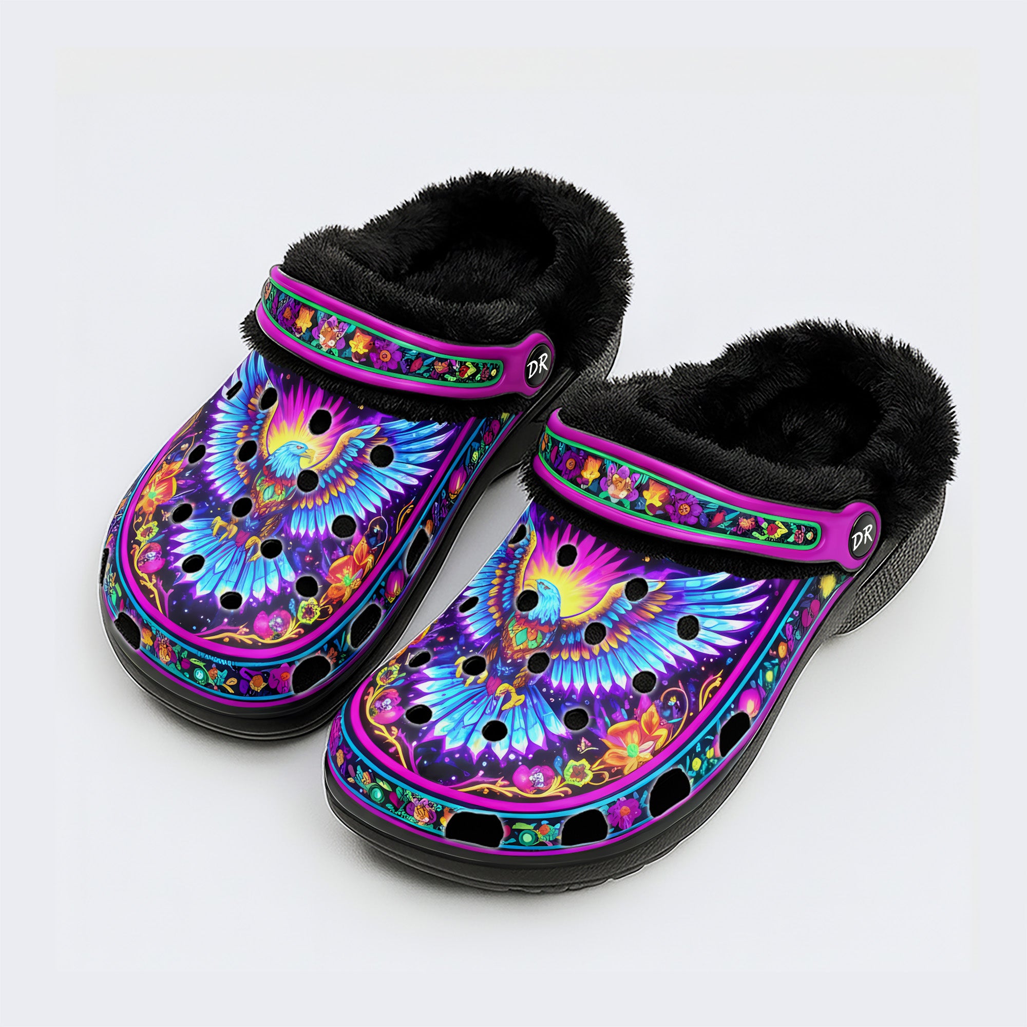 Floral Eagle Print Fleece-Lined Clogs