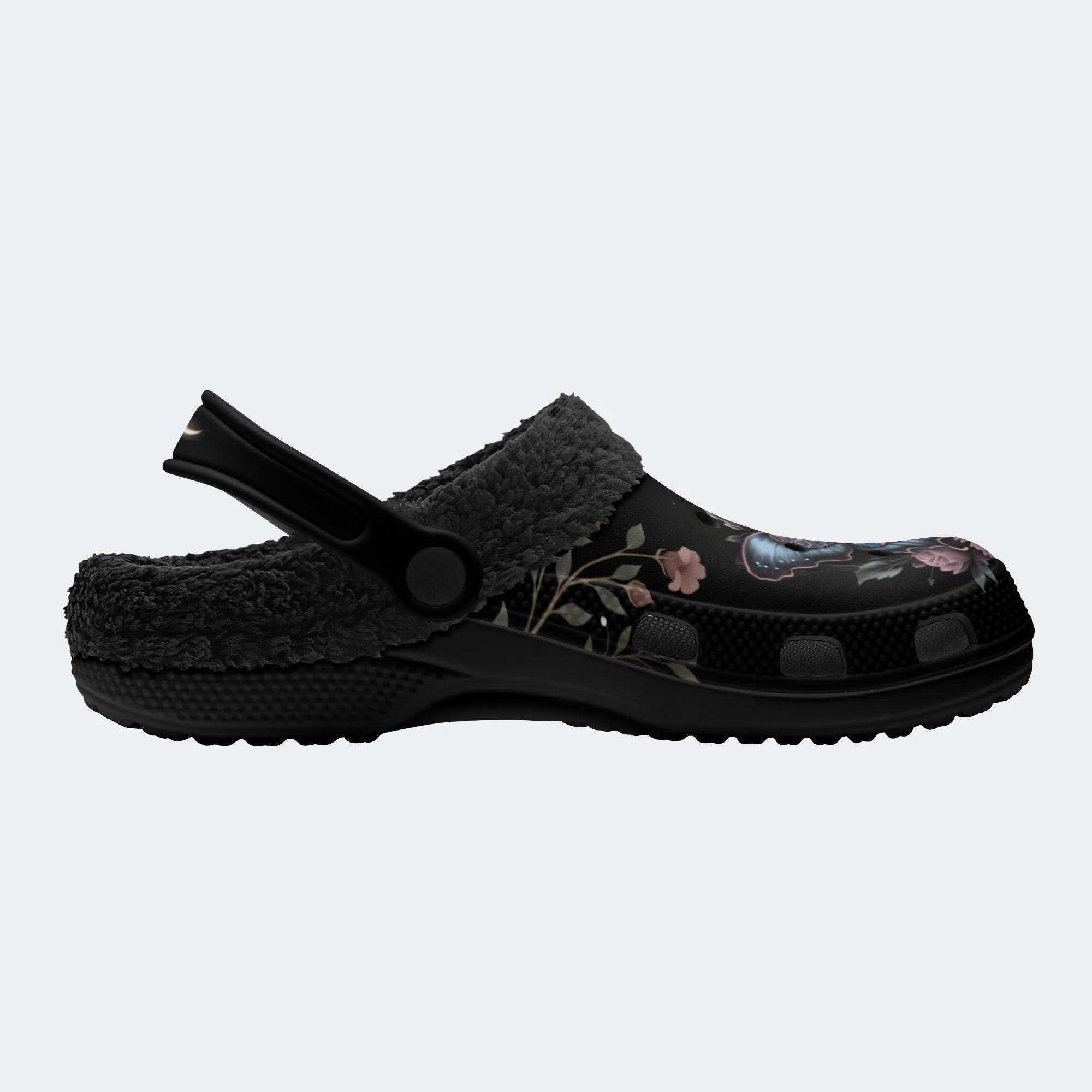 Floral Moth Print - Fur Lined Slippers/Sandals