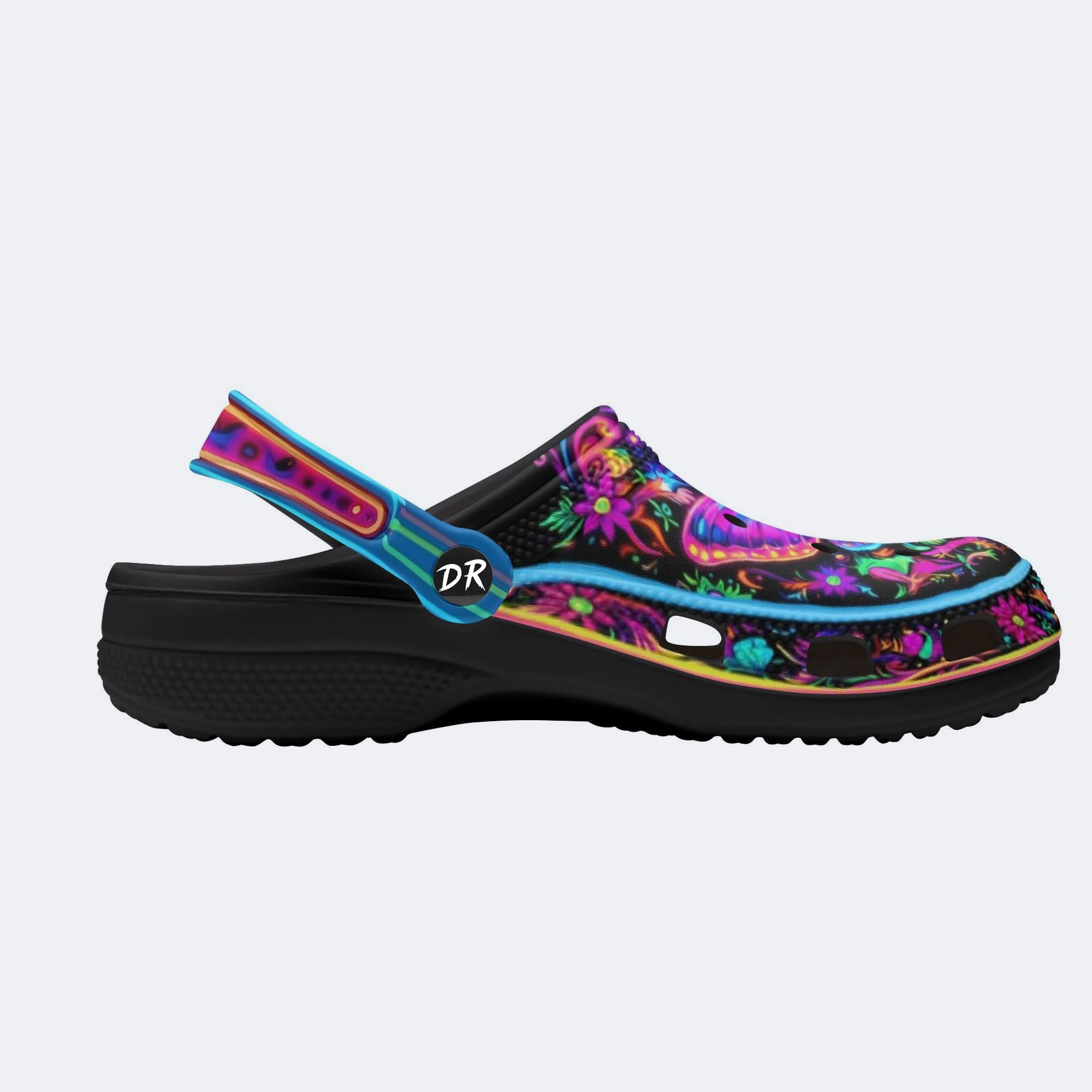 Hyper-Fluorescent psychedelic Butterfly Wreath Print Fleece-Lined Clogs