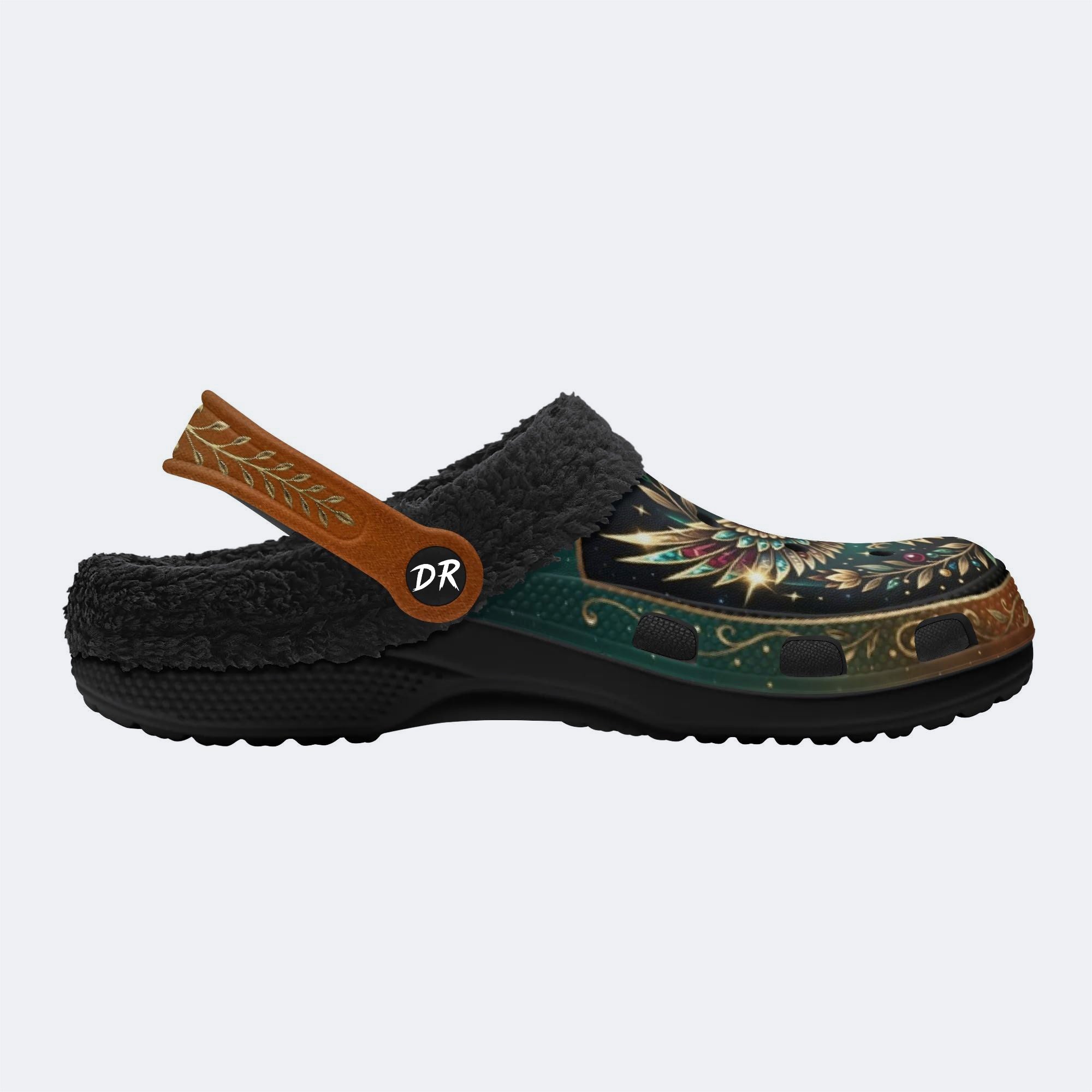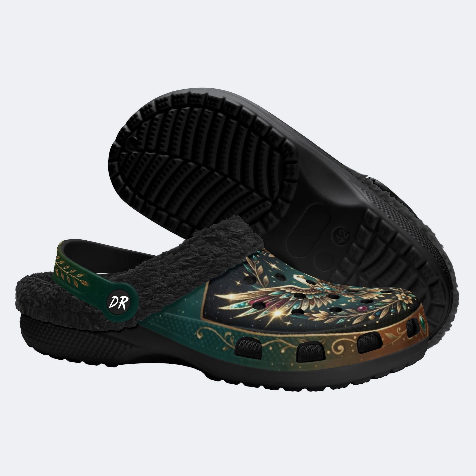 Jewel Eagle Vintage Wreath Print Fleece-Lined Clogs