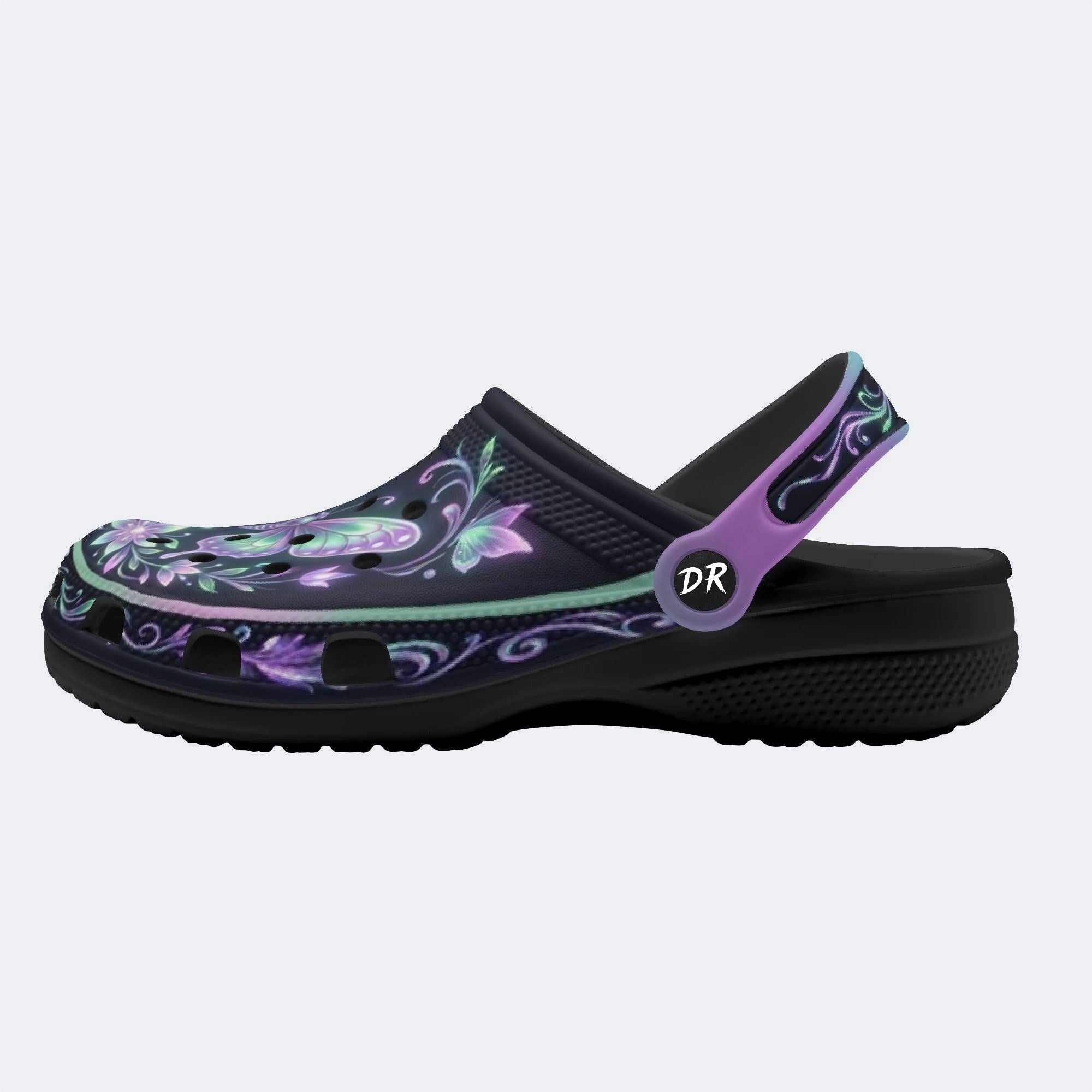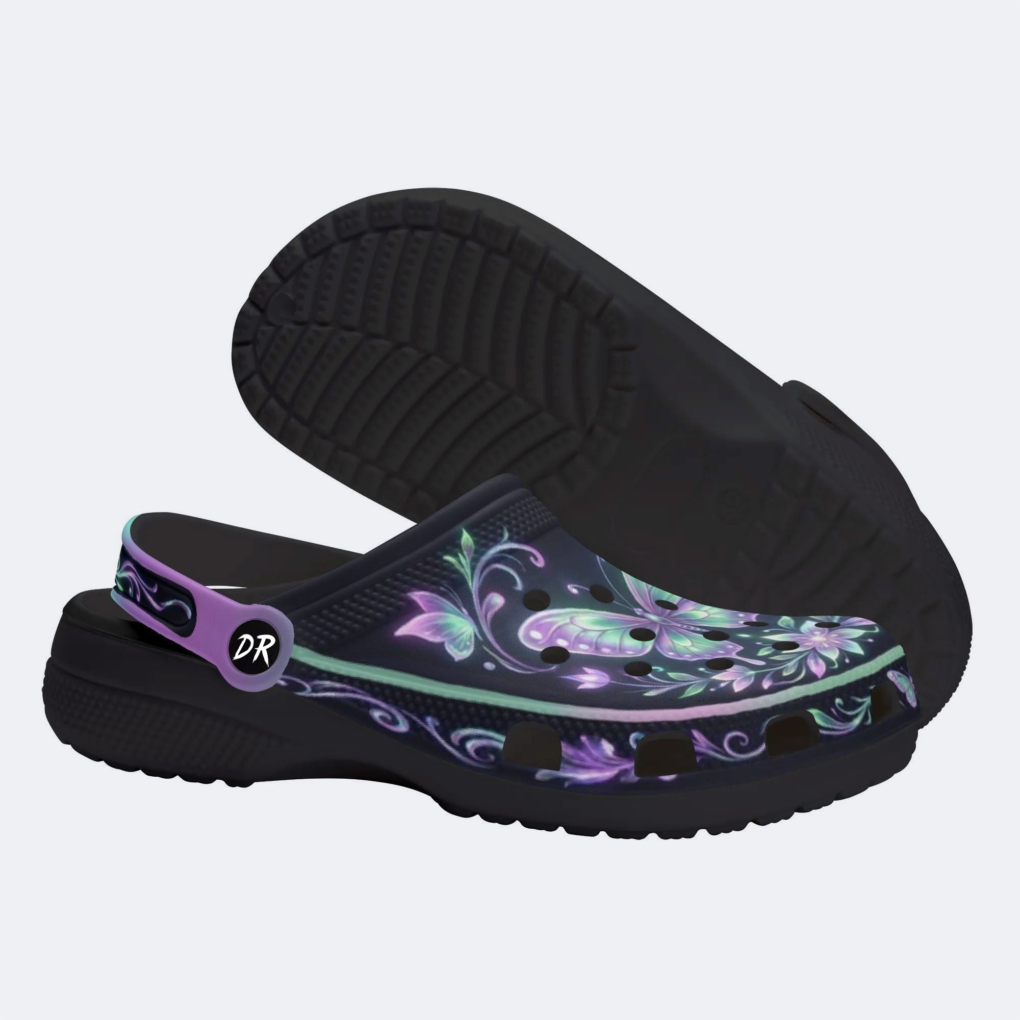 Night-lit Fluorescent Butterfly Vine Print Fleece-Lined Clogs