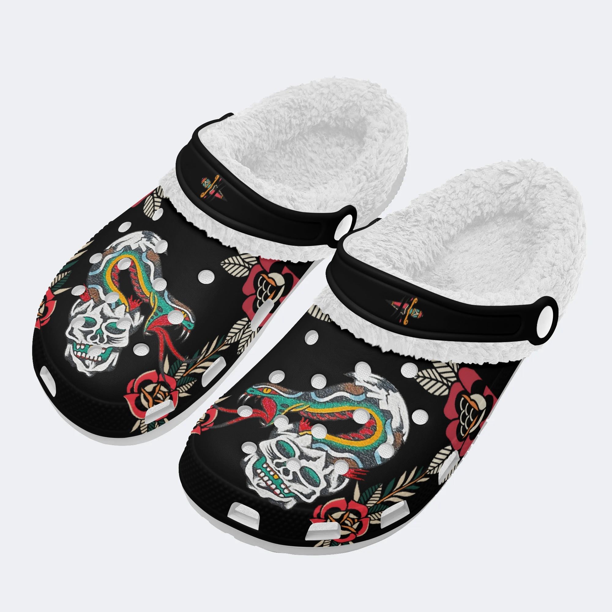 Skull & Snake Print - Fur Lined Slippers/Sandals