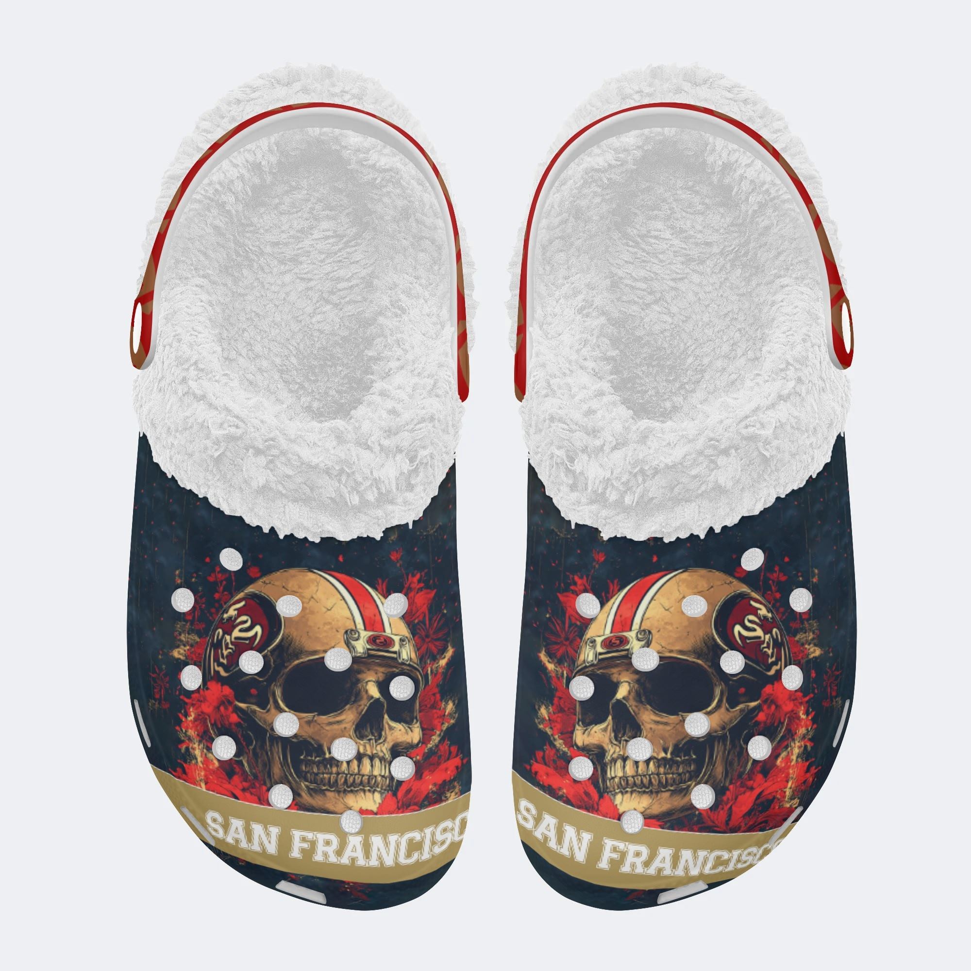 Super Bowl Skull Print - Fur Lined Slippers/Sandals