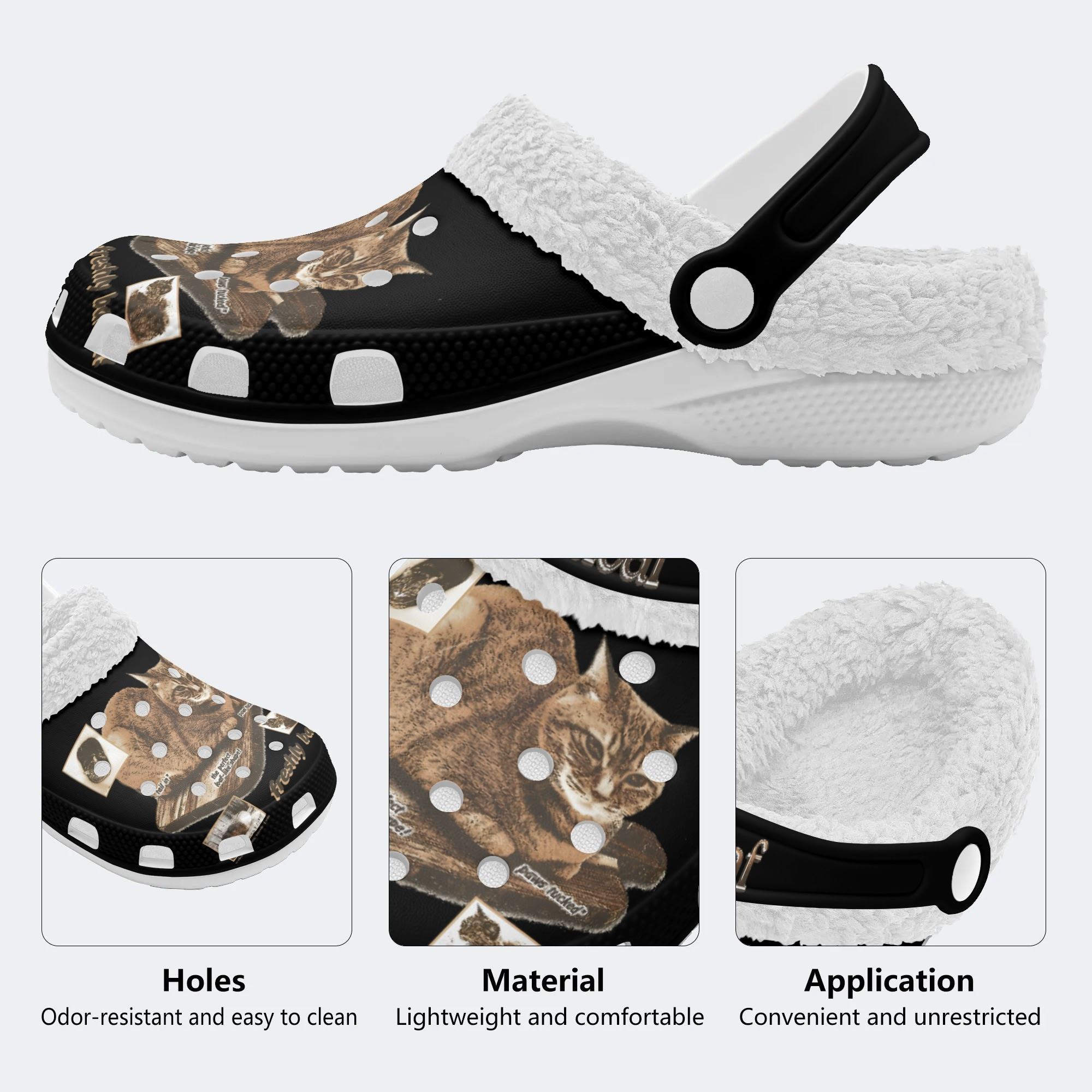 * Materials: Black/White EVA Outsoles basic support with interior is lined with ultra-soft fleece fur, providing all-day cushioning and insulation.