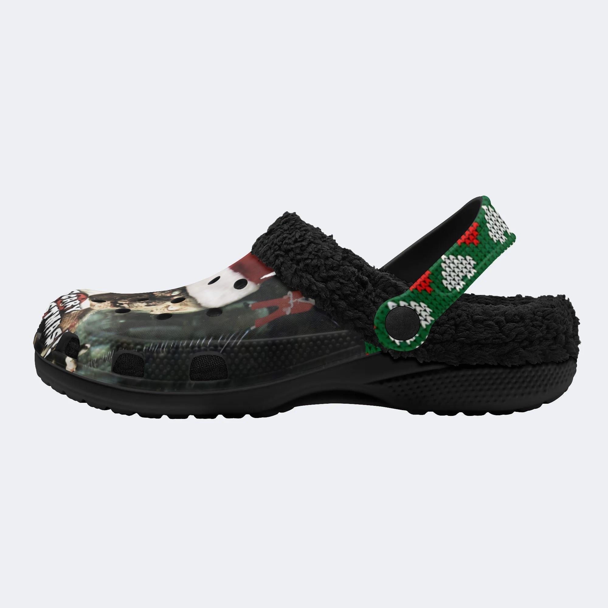 Christmas Skull Print - Fur Lined Slippers/SandalsChristmas Skull Print - Fur Lined Slippers/Sandals