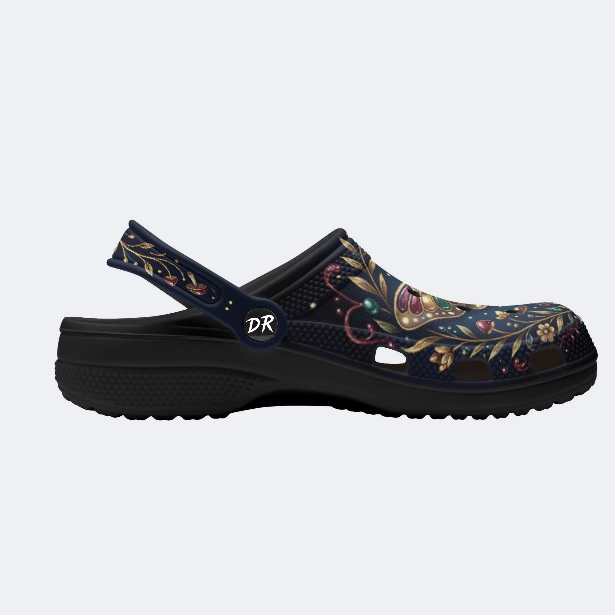 Jewel Moth Vintage Wreath Print Fleece-Lined Clogs